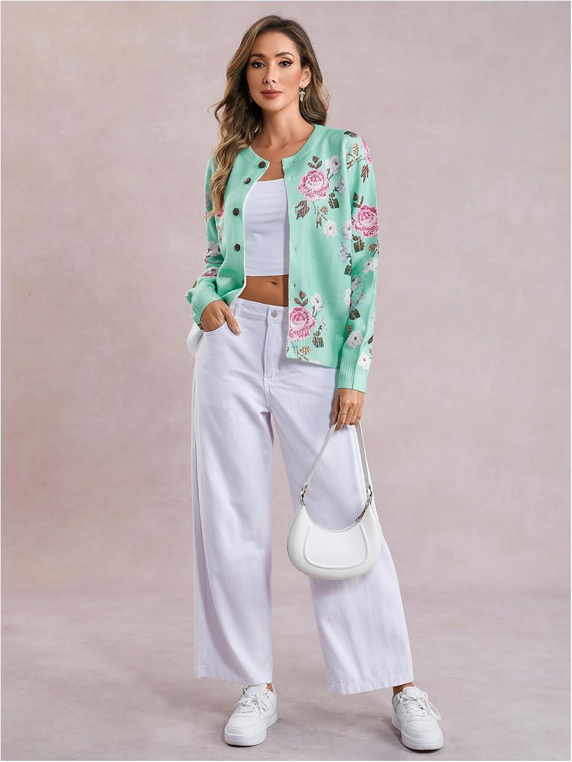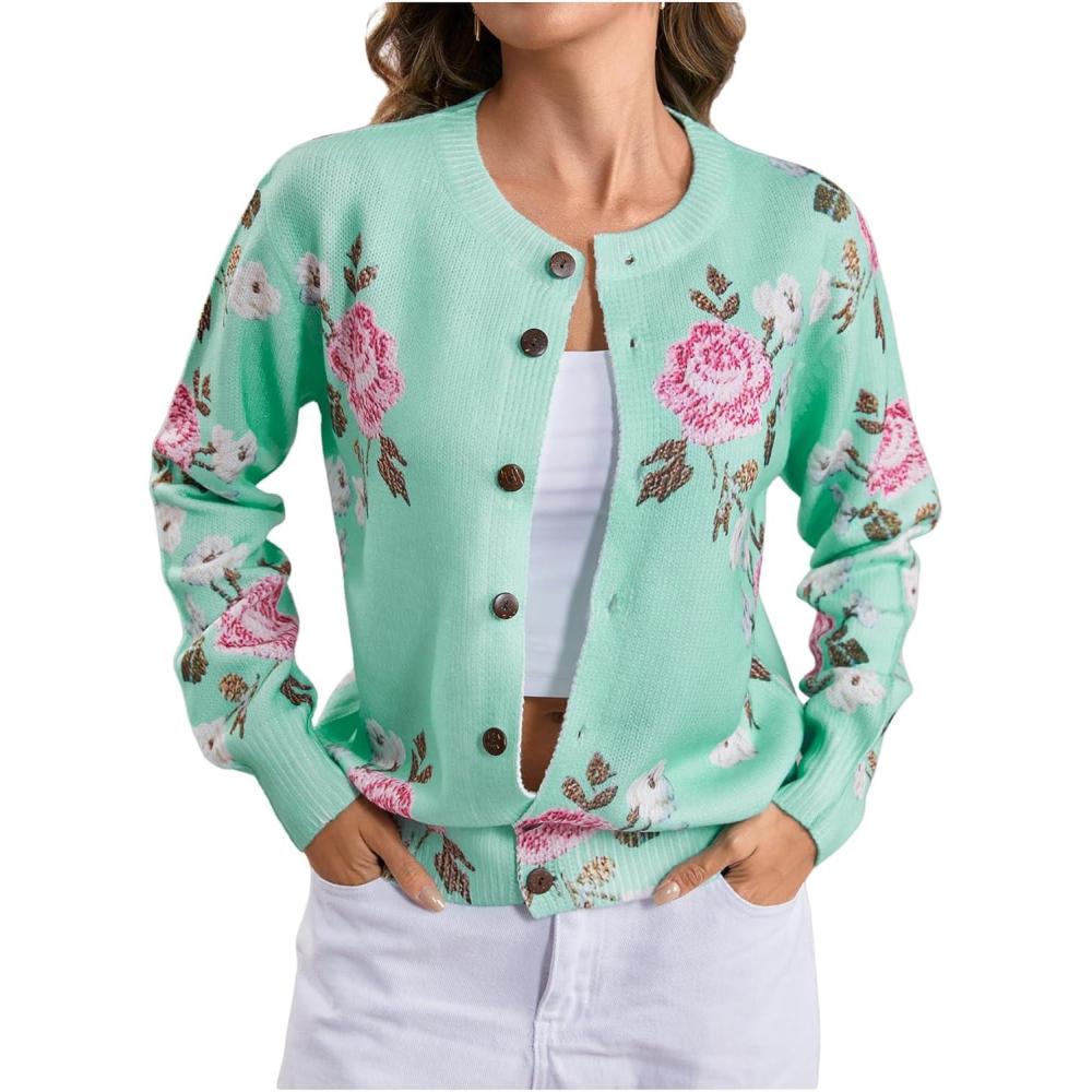 SOLY HUX Women’s Floral Print Button Down Cardigan Sweater Lightweight Cozy Fall Outfits Trendy 2025(Green Flowers)