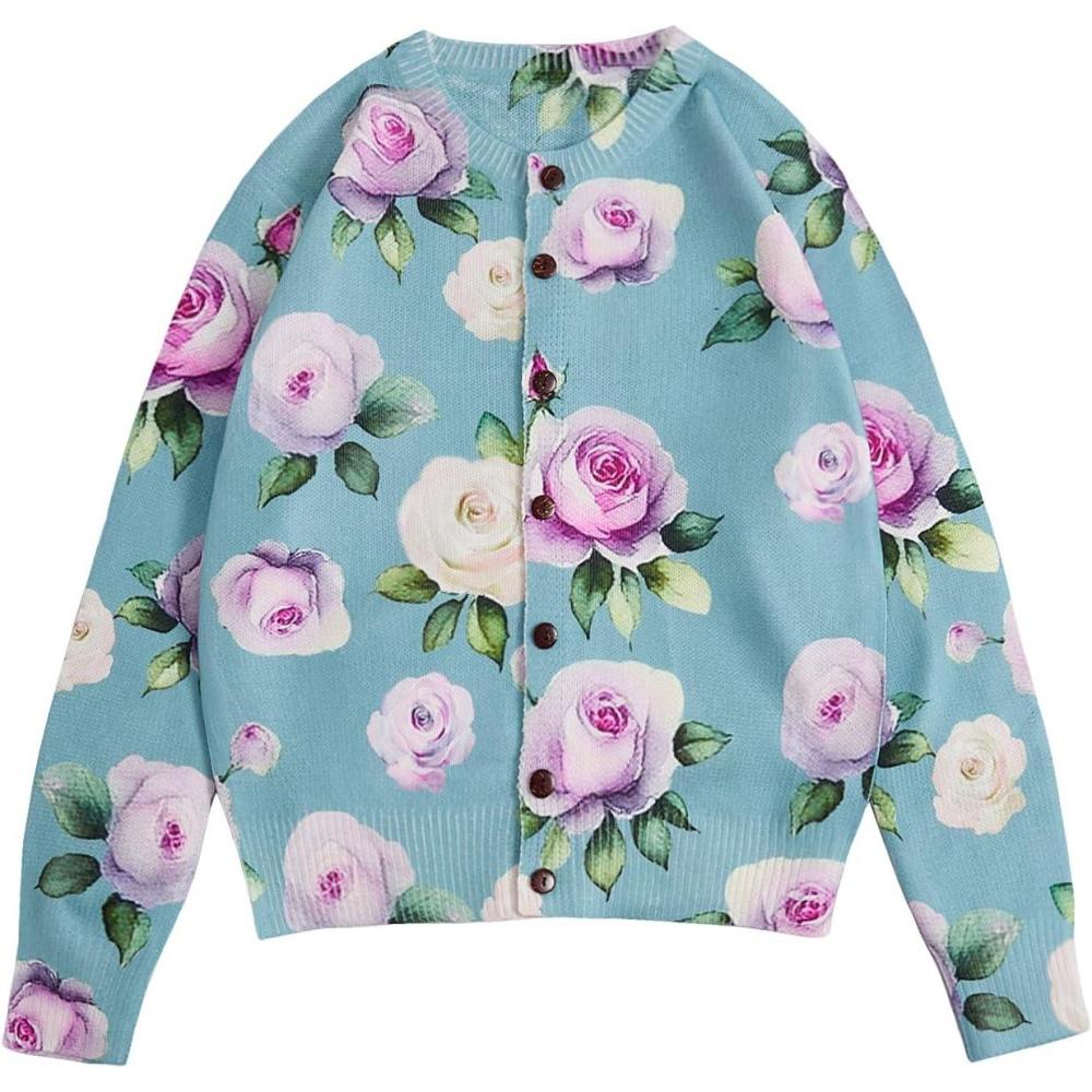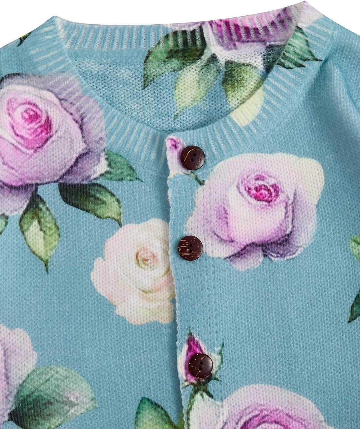 SOLY HUX Women’s Floral Print Button Down Cardigan Sweater Lightweight Cozy Fall Outfits Trendy 2025(Light Blue Flowers)