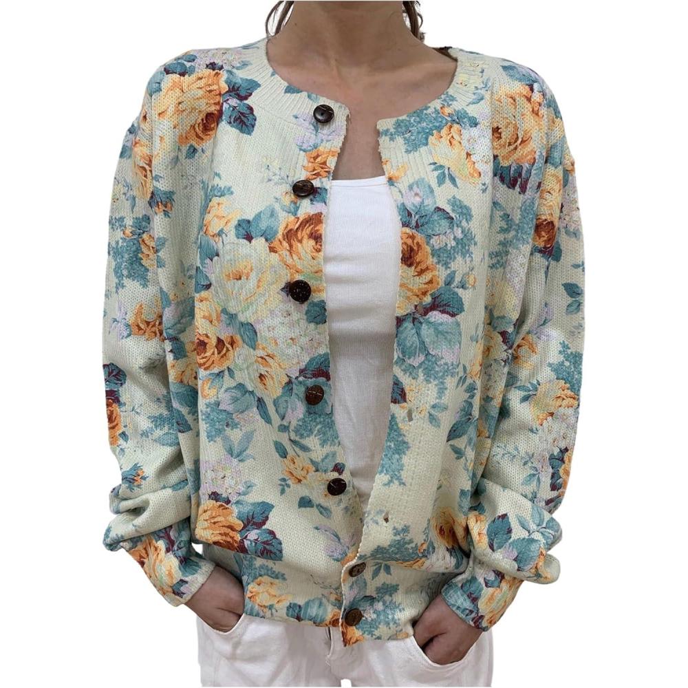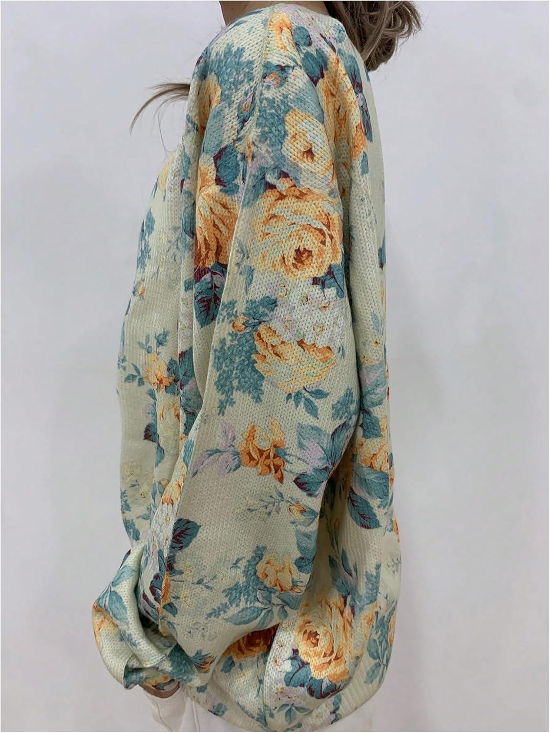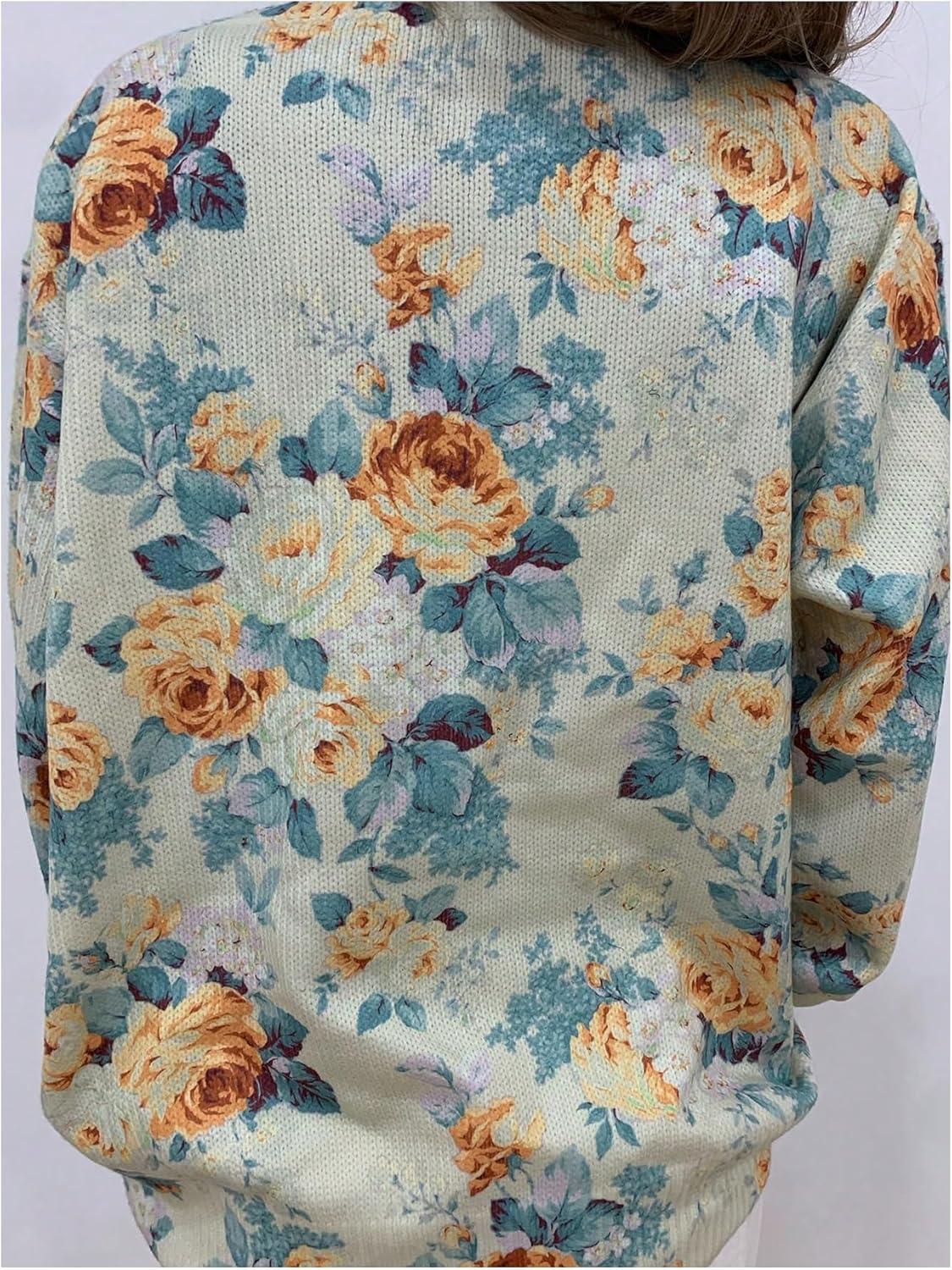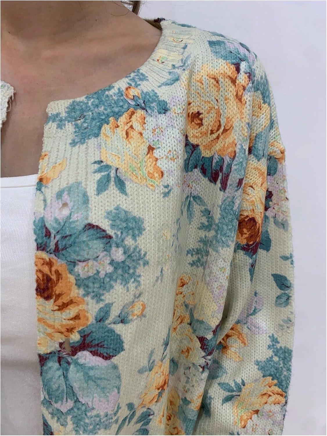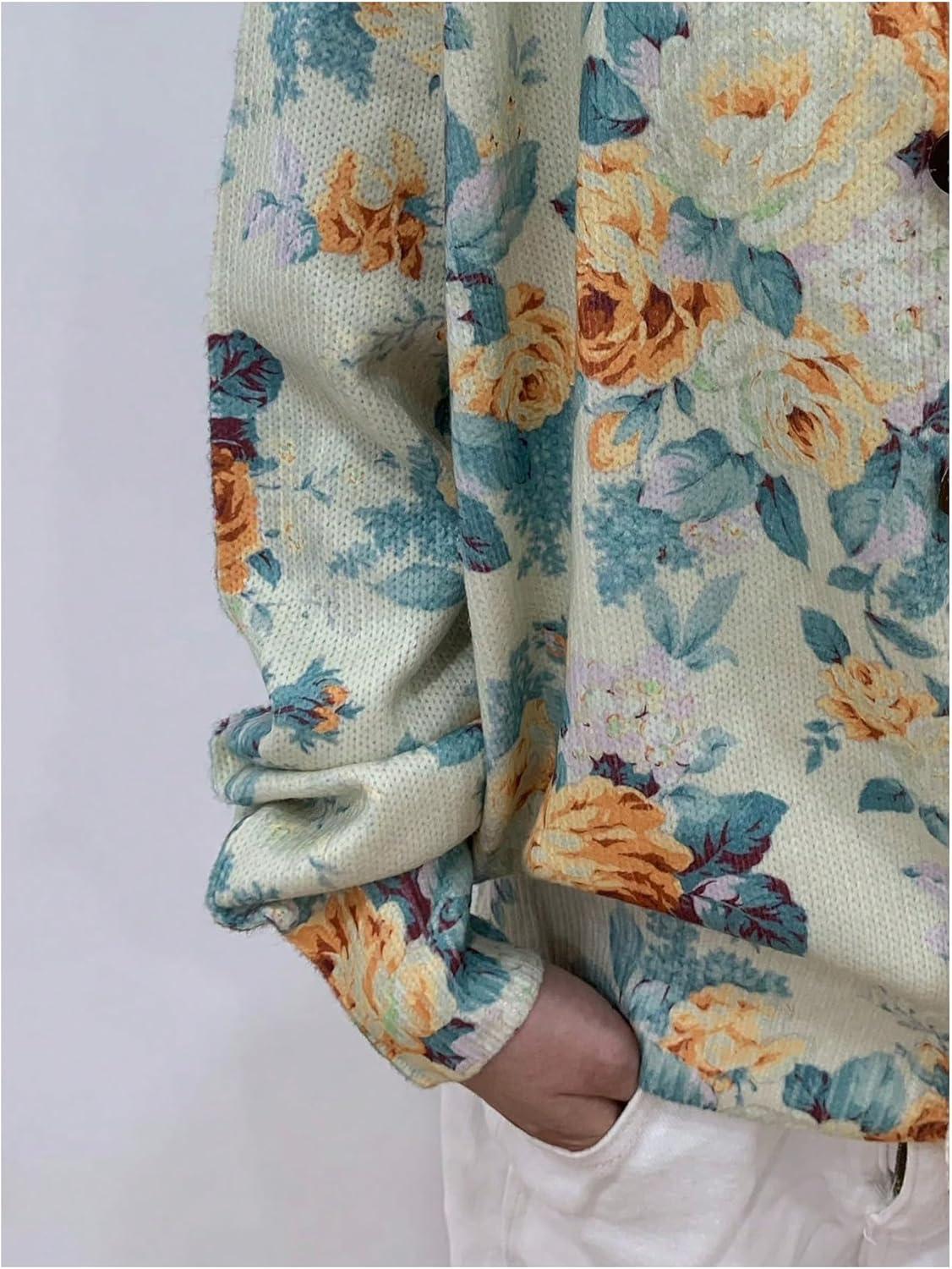 SOLY HUX Women’s Floral Print Button Down Cardigan Sweater Lightweight Cozy Fall Outfits Trendy 2025(Yellow Floral)