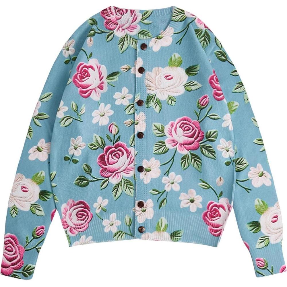 SOLY HUX Women’s Floral Print Button Down Cardigan Sweater Lightweight Cozy Fall Outfits Trendy 2025(Roses Print)