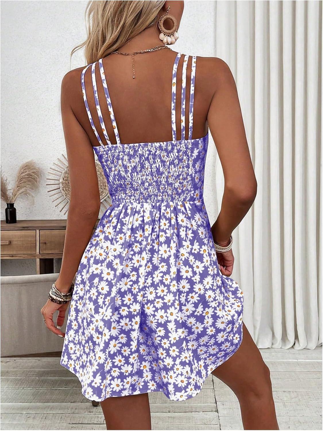 SOLY HUX Women’s Floral Print Cami Dress Spaghetti Strap A Line Flowy Summer Mini Dresses Sundress(Purple Floral)