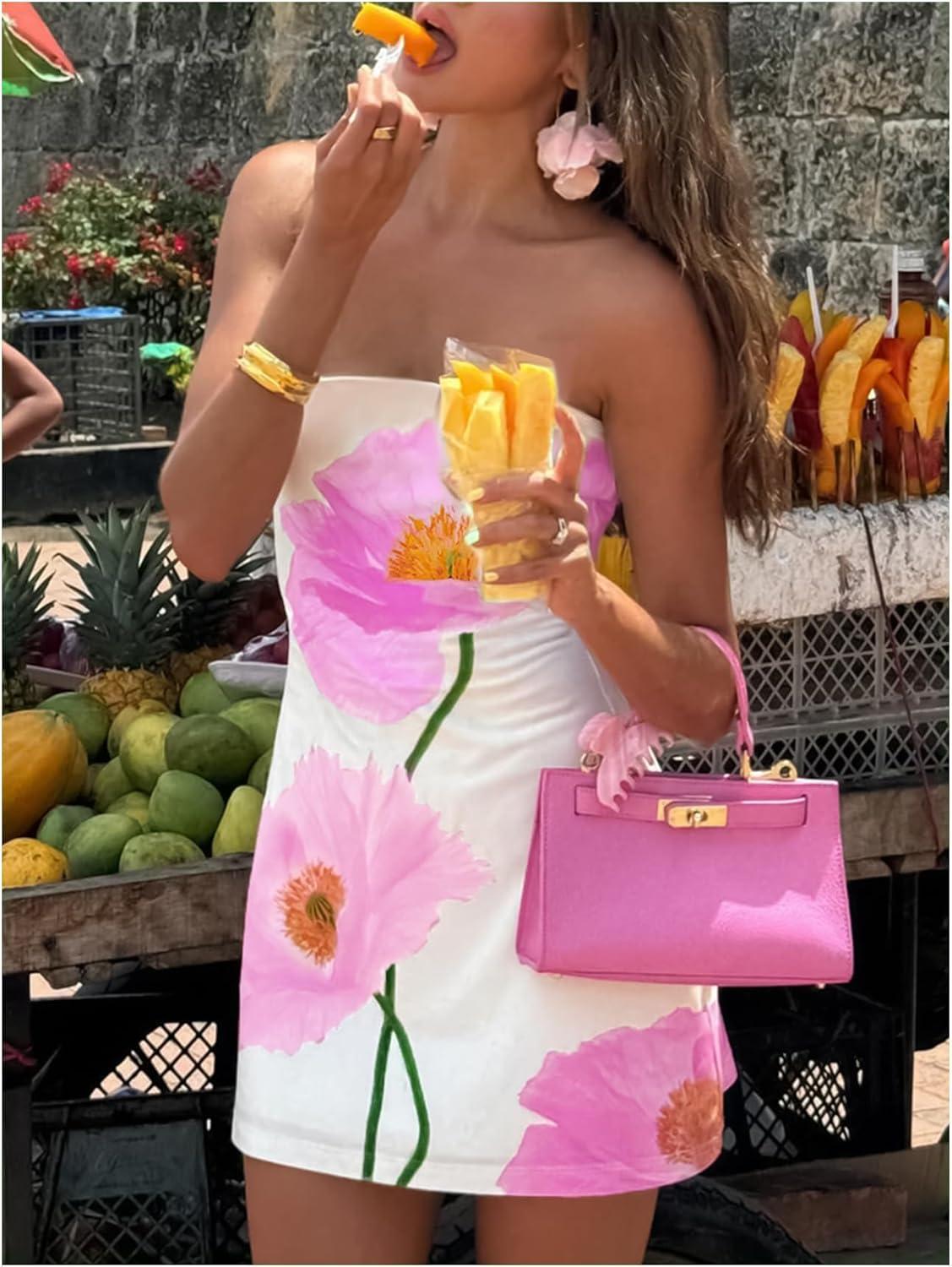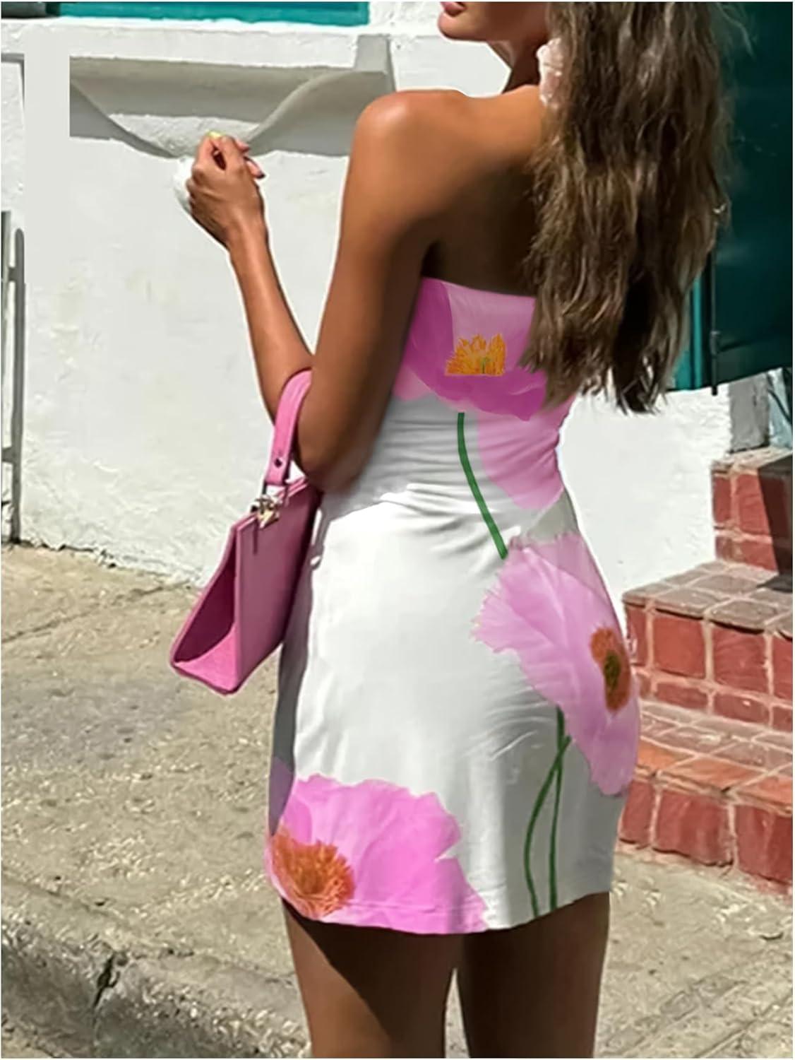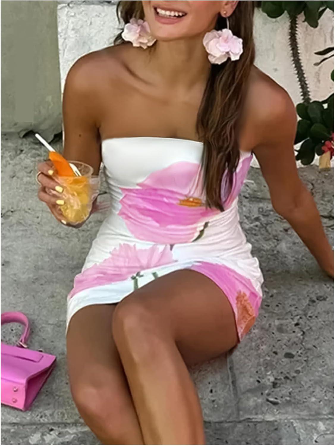 SOLY HUX Women’s Floral Print Mini Tube Dress Strapless Sleeveless Bodycon Dresses(White Floral Printed)