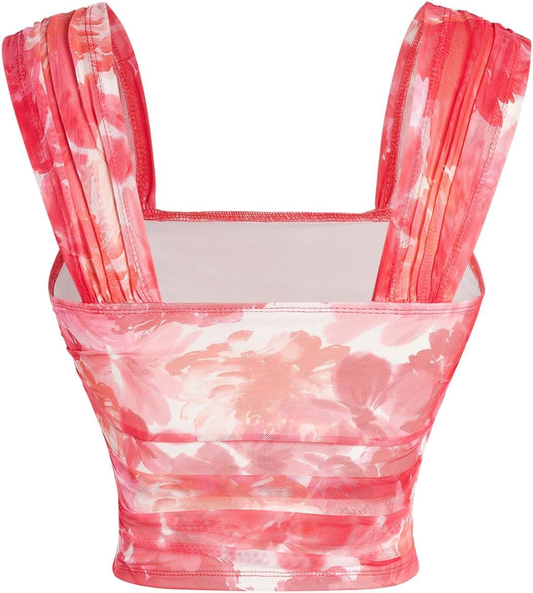 image:imageSOLY HUX Womens Floral Print Tank Tops Square Neck Sleeveless Going Out Tops Double Lined Summer Crop Tank TopsAbstract Floral