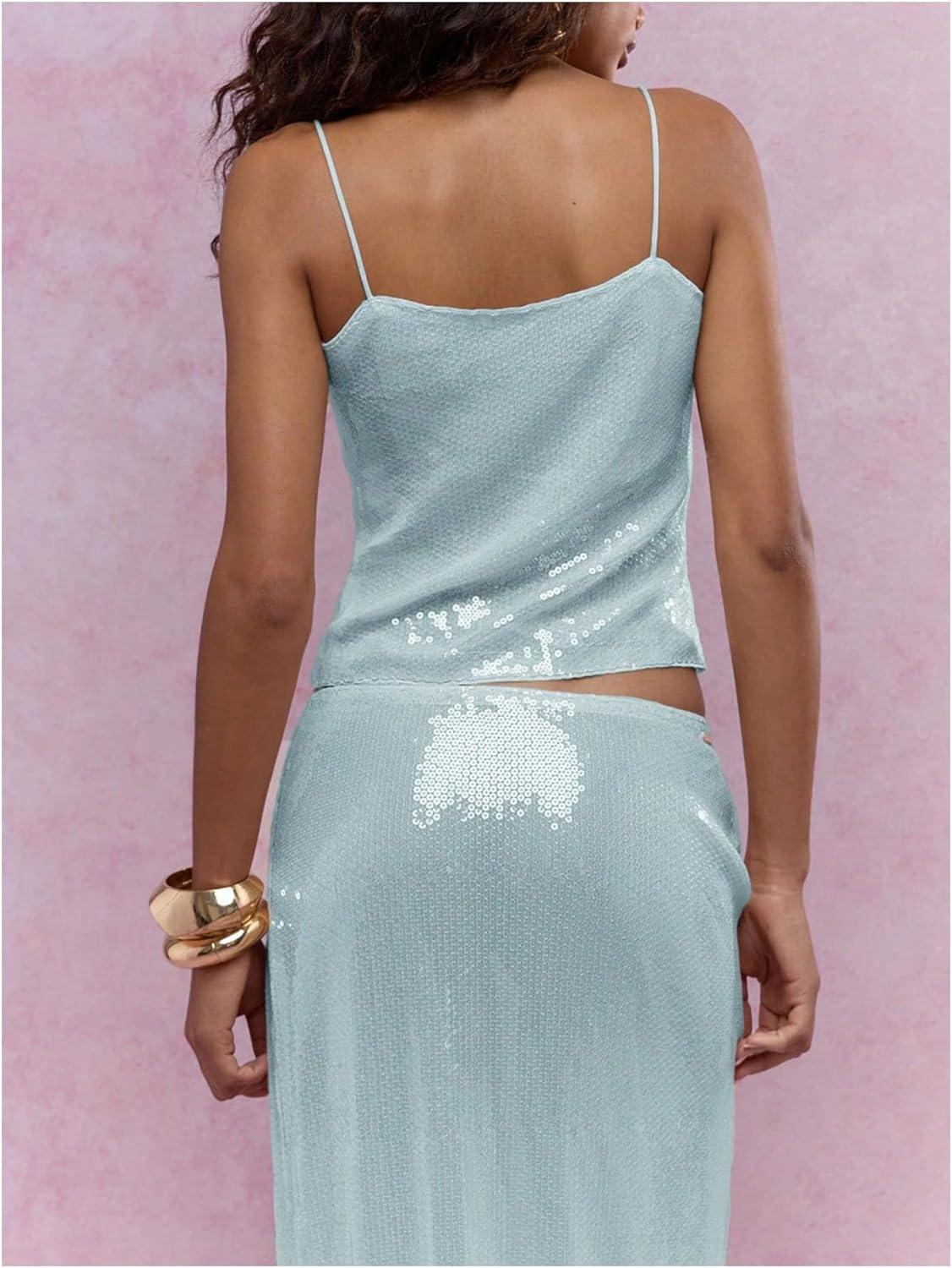 SOLY HUX Women’s Glitter Sequin Cami Tops Spaghetti Strap Camisole Sleeveless Party Clubwear Top(Teal Blue)