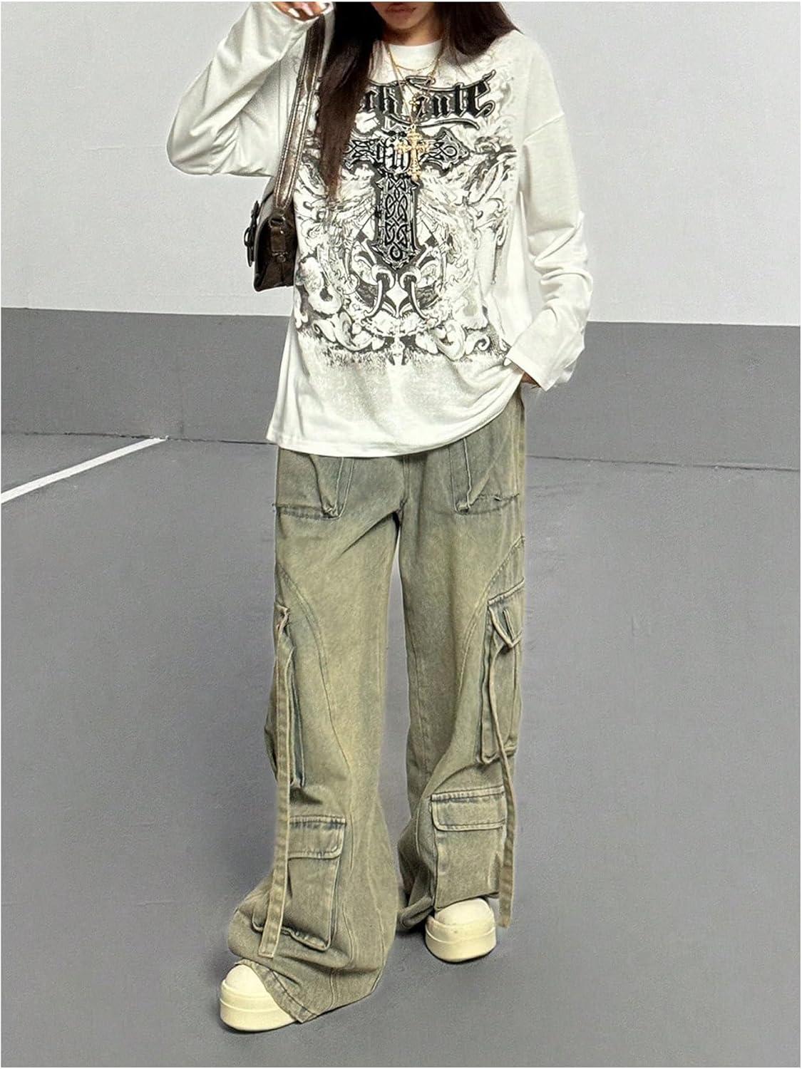 image:imageSOLY HUX Womens Gothic Oversized Tops Long Sleeve Crew Neck Graphic Tee Shirts Y2k Grunge ClothesDark Grey