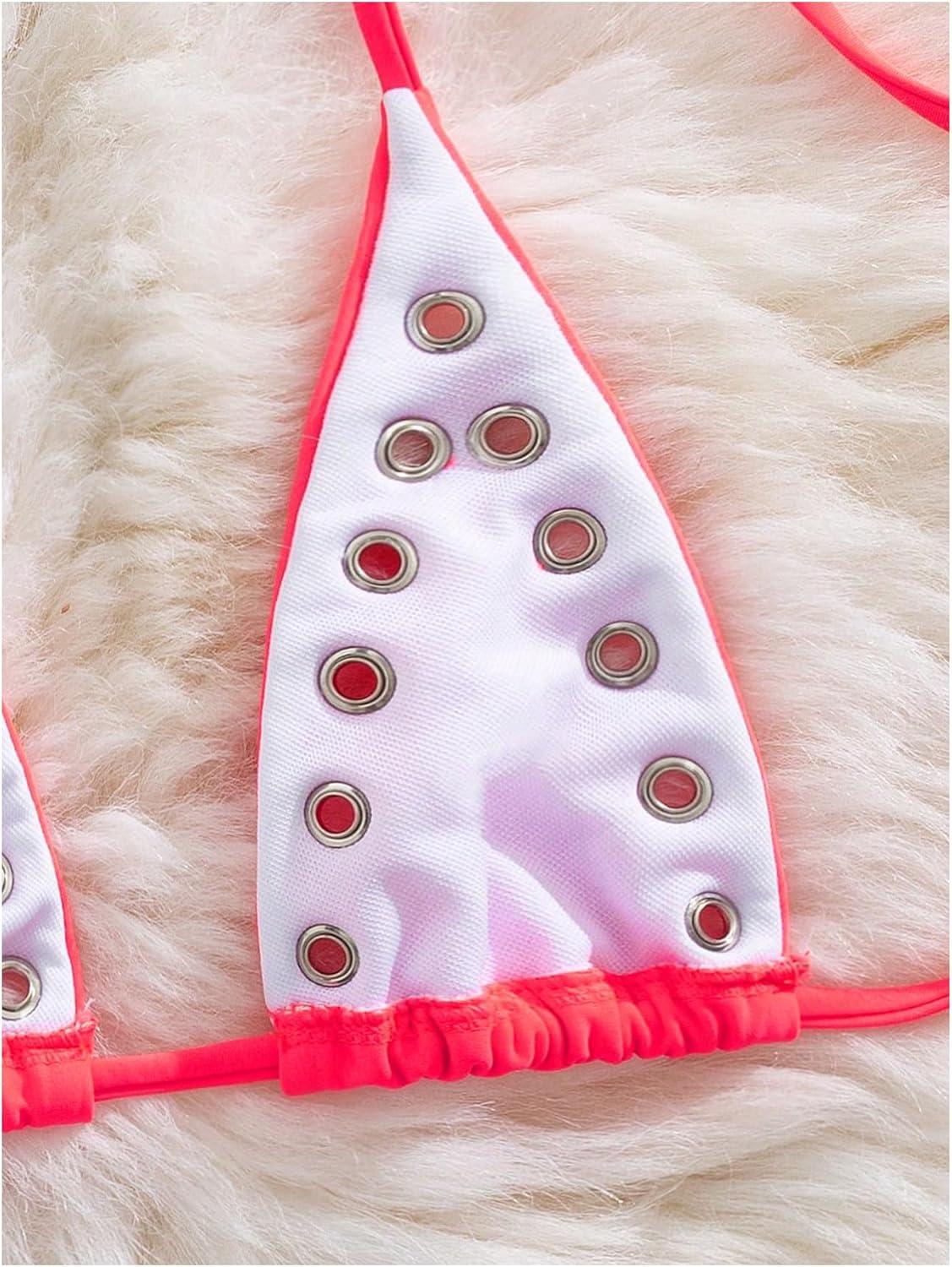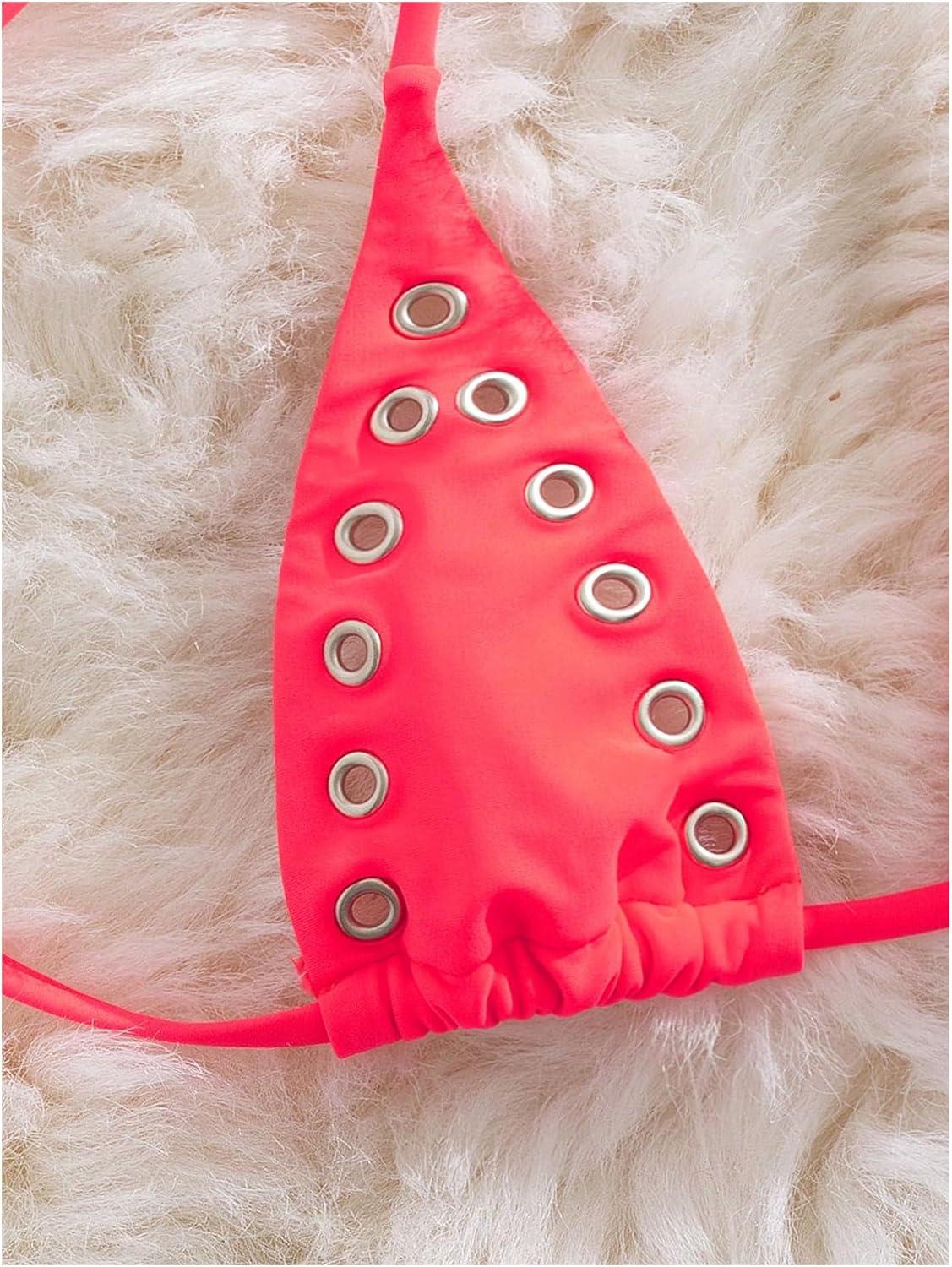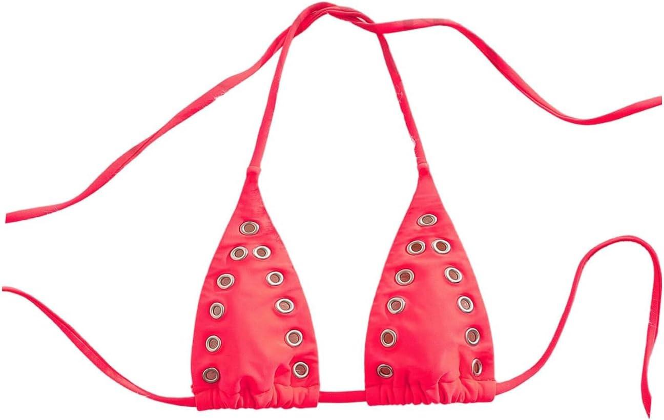 SOLY HUX Women’s Grommet Eyelet Halter Bikini Top Tie Backless Swim Tops Beach Wear(Pure Pink)