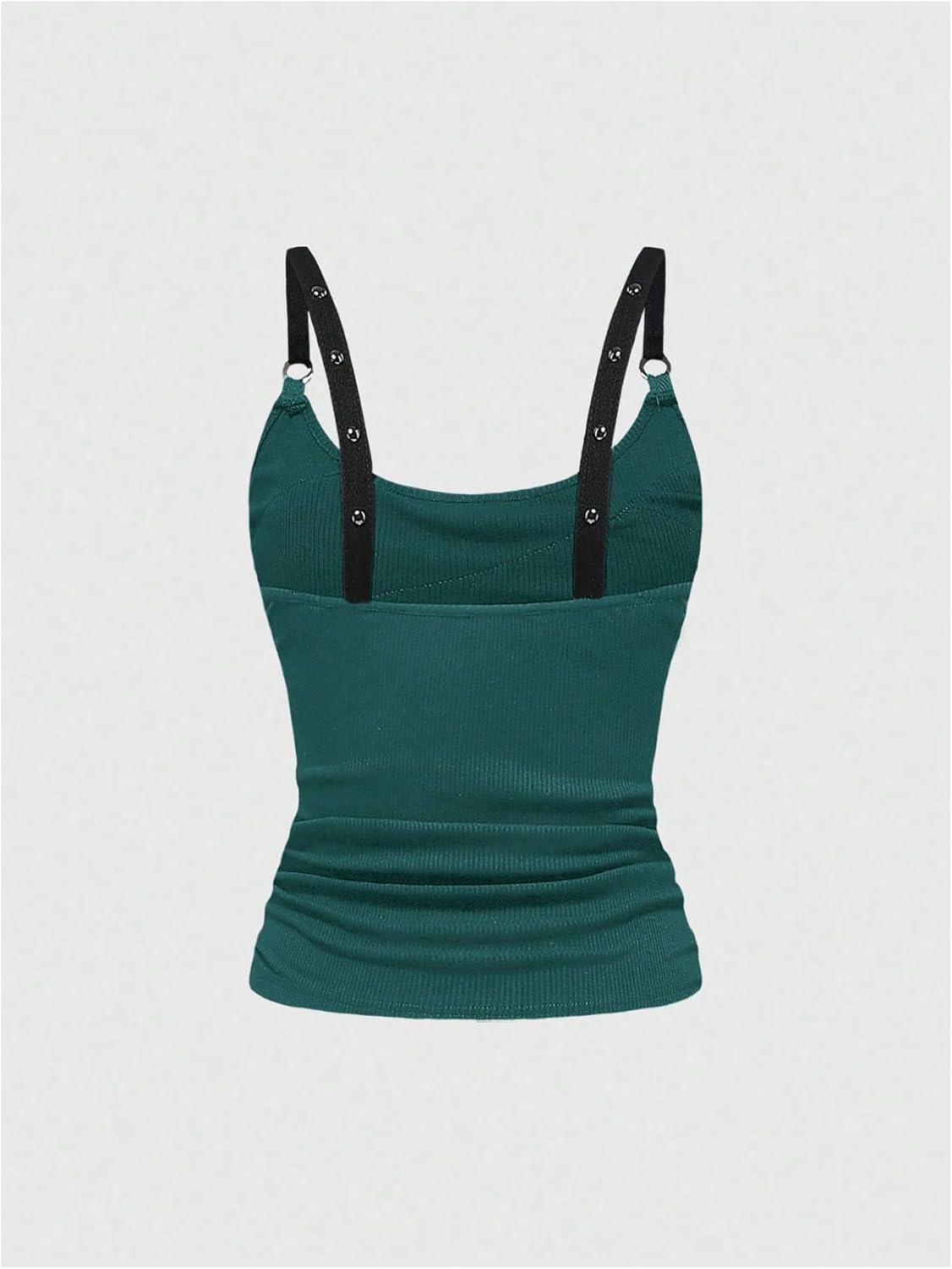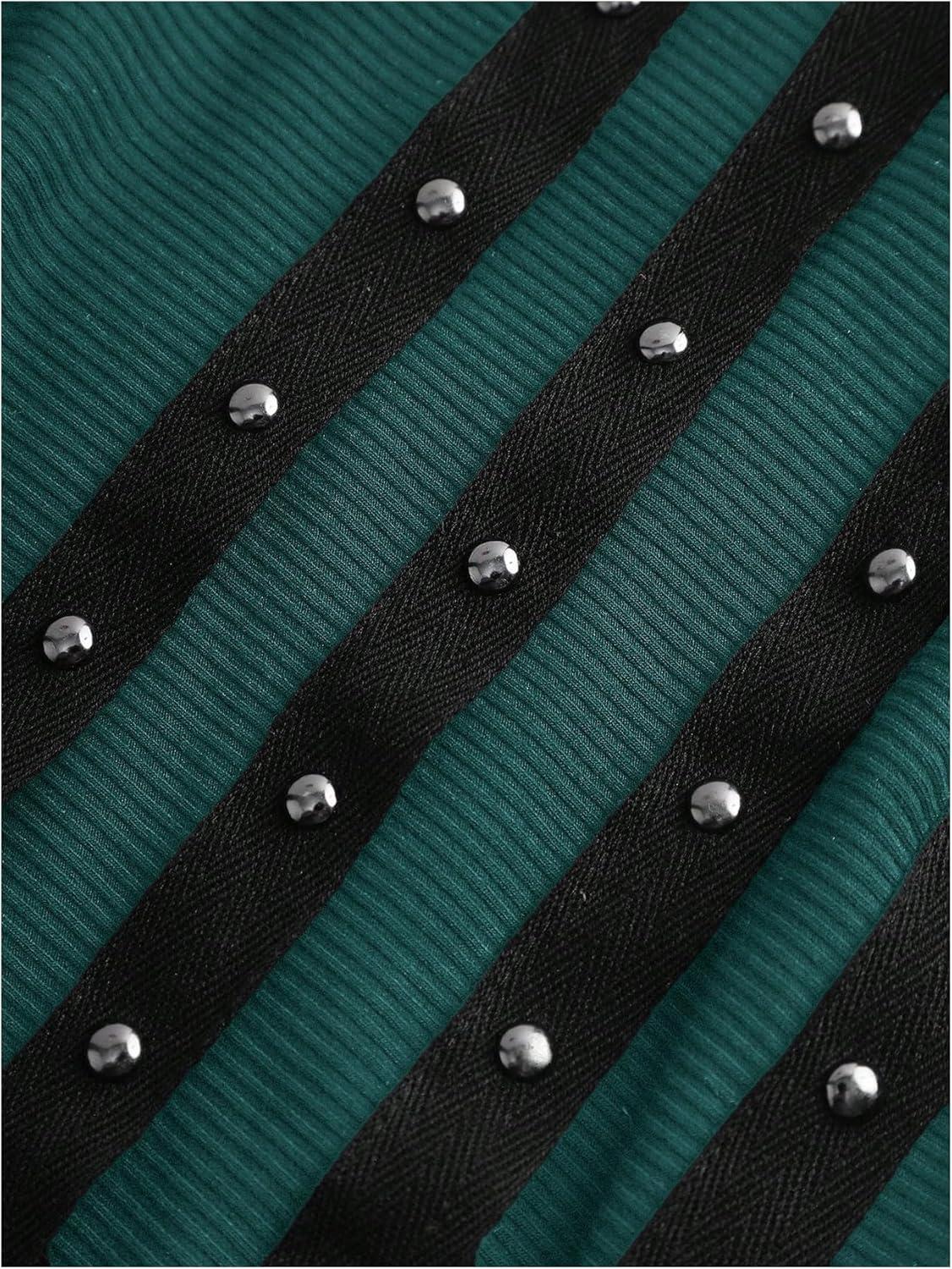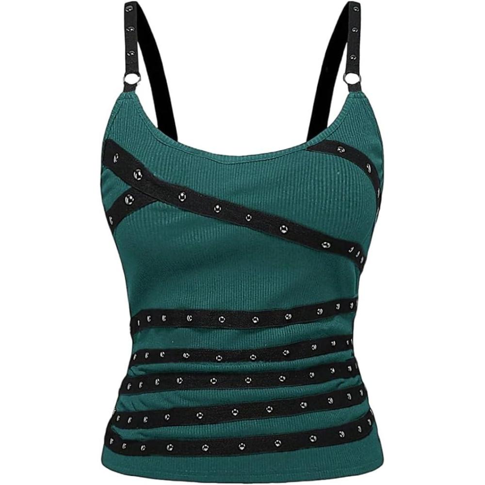 SOLY HUX Women’s Grunge Studded Scoop Neck Tank Top Summer Sleeveless Ribbed Knit Party Tops Streetwear(Pure Dark Green)