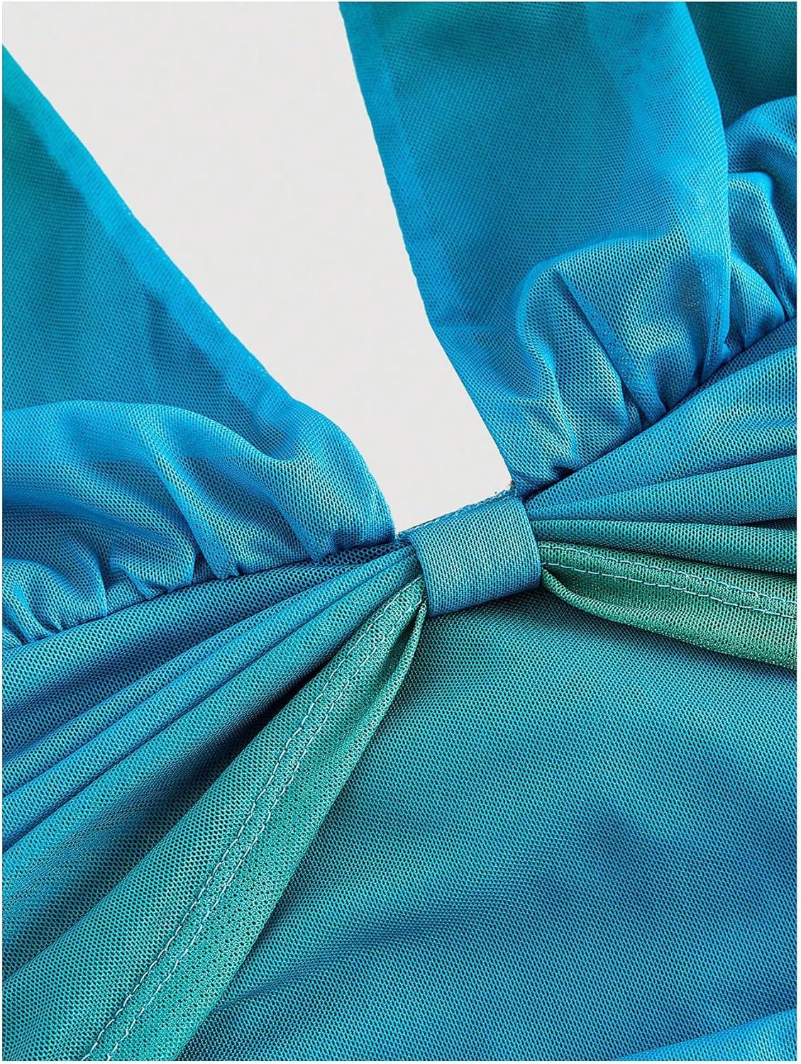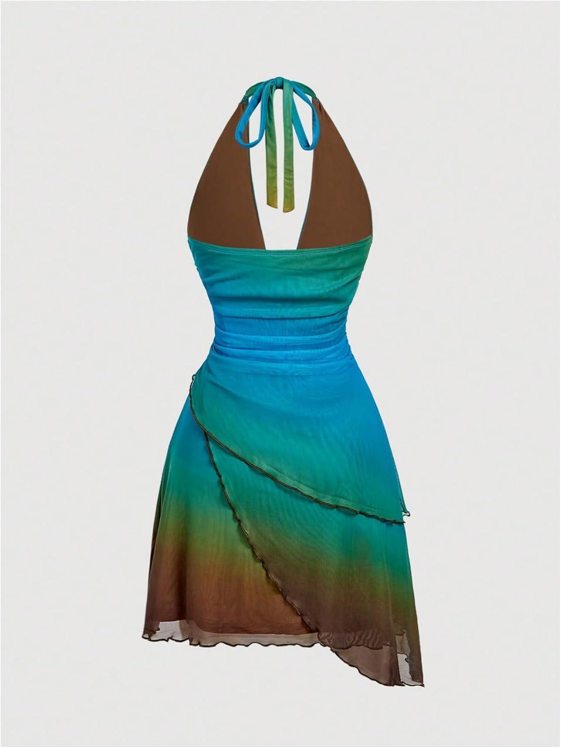 SOLY HUX Women’s Halter Mini Dress Flowy Backless Deep V Neck Summer Casual Beach Dresses(Green Blue)