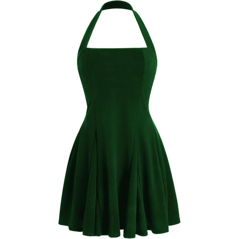 SOLY HUX Women’s Halter Mini Dress Sexy Draped Sleeveless Backless Ruched Bodycon Club Party Going Out Dresses(Pure Green)