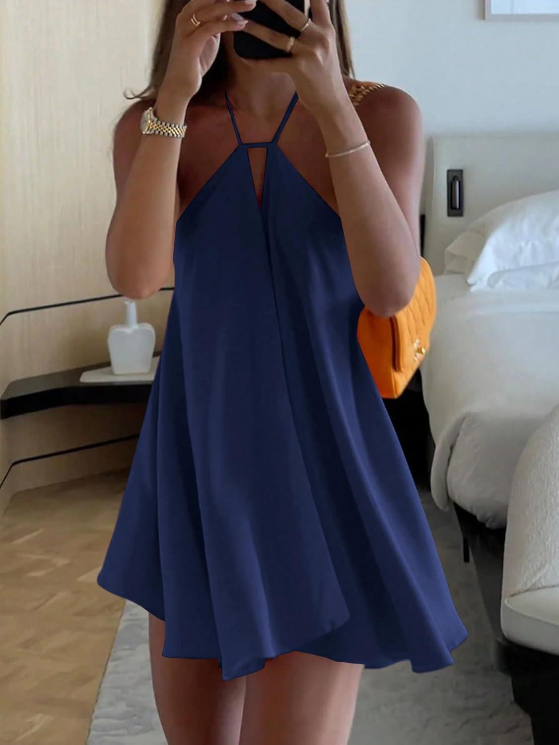 SOLY HUX Women’s Halter Neck Sleeveless Bow Tie Backless Flowy Mini Dress Beach Vacation Clothes(Dark Blue)