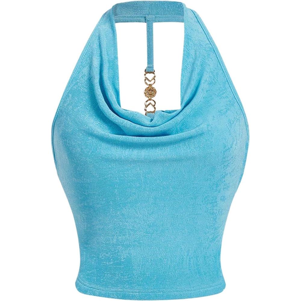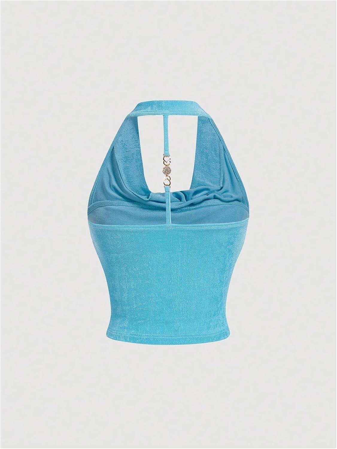 SOLY HUX Women’s Halter Tops Draped Front Sleeveless Backless Y2K Crop Sexy Cami Tops Going Out Summer Outfits(Plain Light Blue)