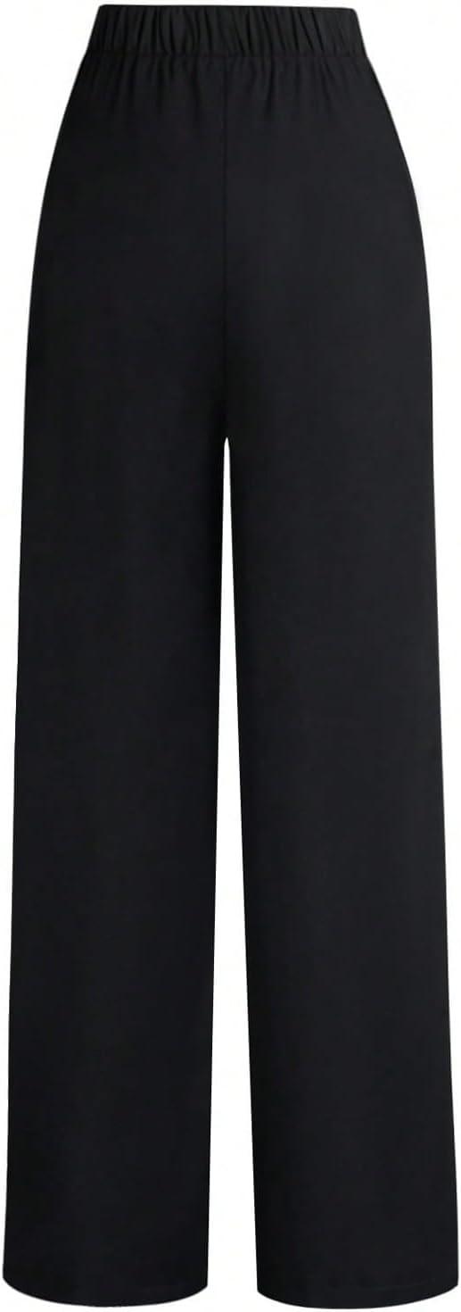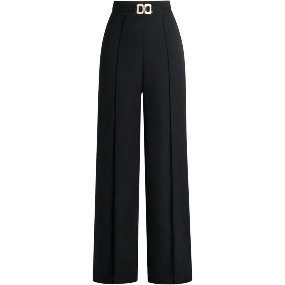 SOLY HUX Women’s High Waisted Dress Pants Metal Linked Casual Work Office Business Long Trousers(Plain Black)