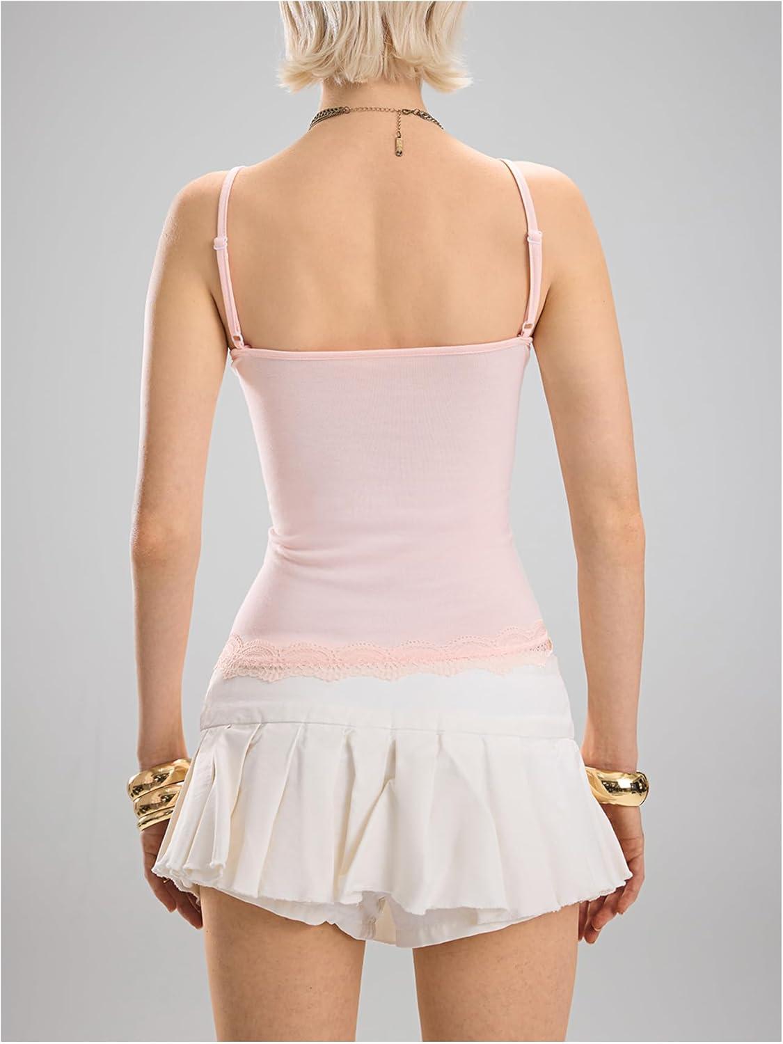 SOLY HUX Women’s Lace Trim Grunge Fairy Sleeveless Tops Y2k Slim Fit Camisole Shirts Music Festival Outfits(Pink Floral)