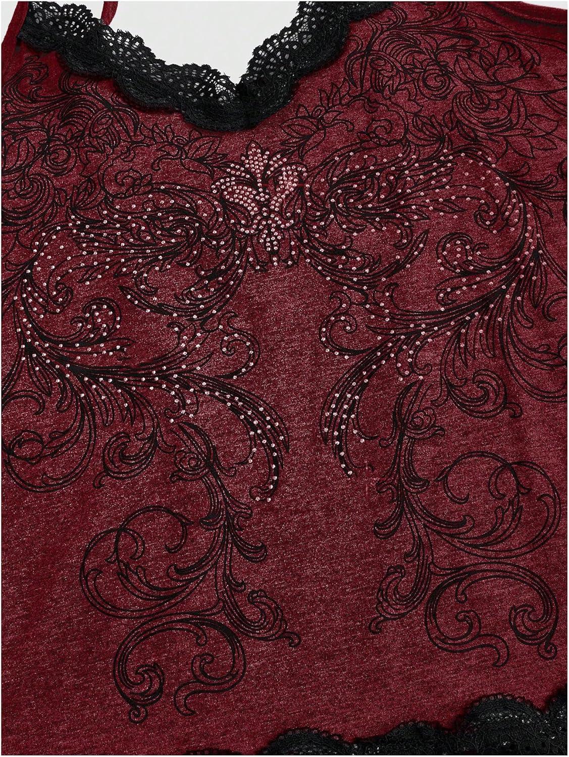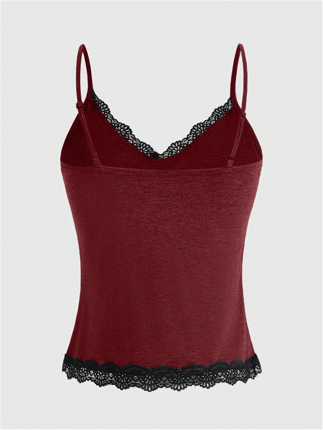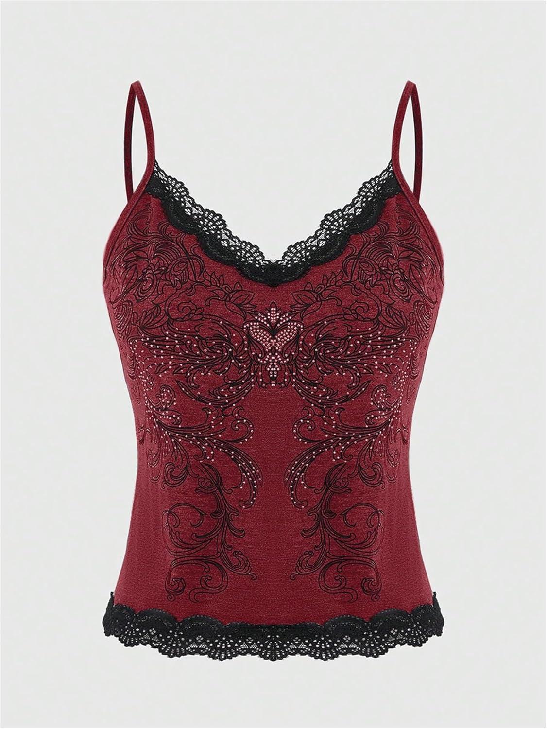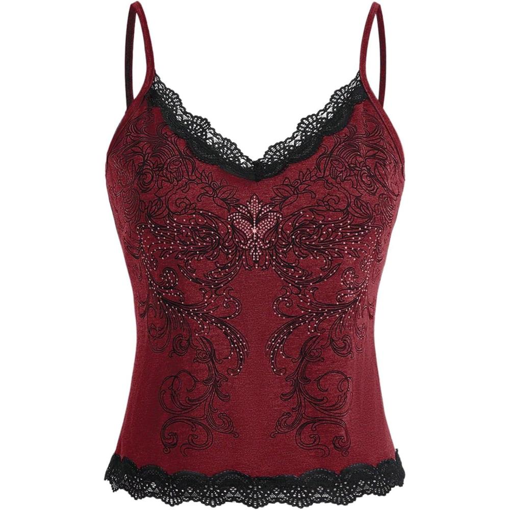 SOLY HUX Women’s Lace Trim Grunge Fairy Sleeveless Tops Y2k Slim Fit Camisole Shirts Music Festival Outfits(Rose Red)