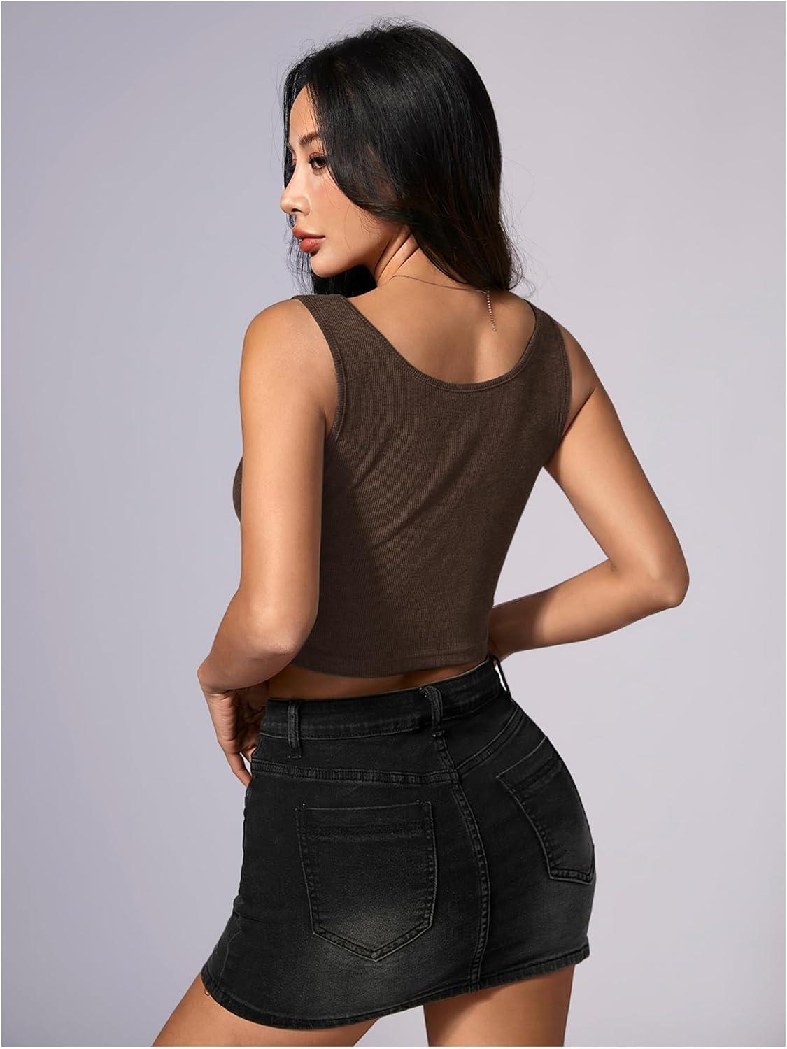 SOLY HUX Women’s Lace Up Crop Tank Tops Sleeveless Scoop Neck Ribbed Slim Fit Going Out Shirts(Plain Brown)