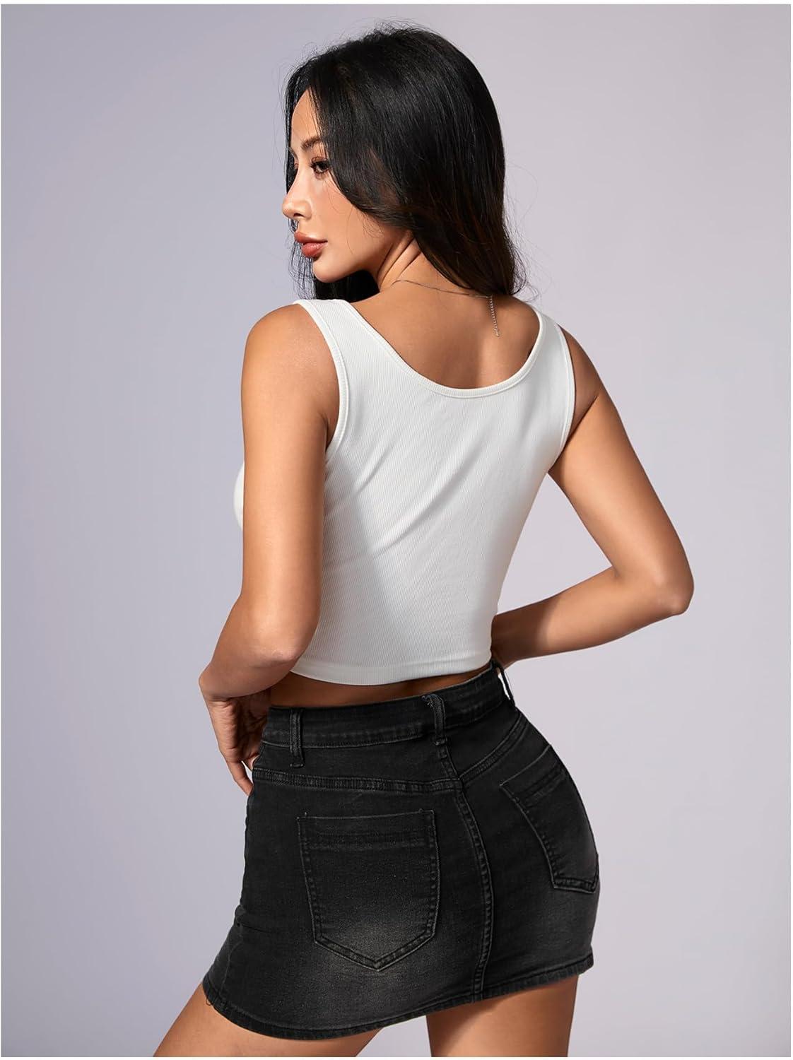 SOLY HUX Women’s Lace Up Crop Tank Tops Sleeveless Scoop Neck Ribbed Slim Fit Going Out Shirts(Plain White)