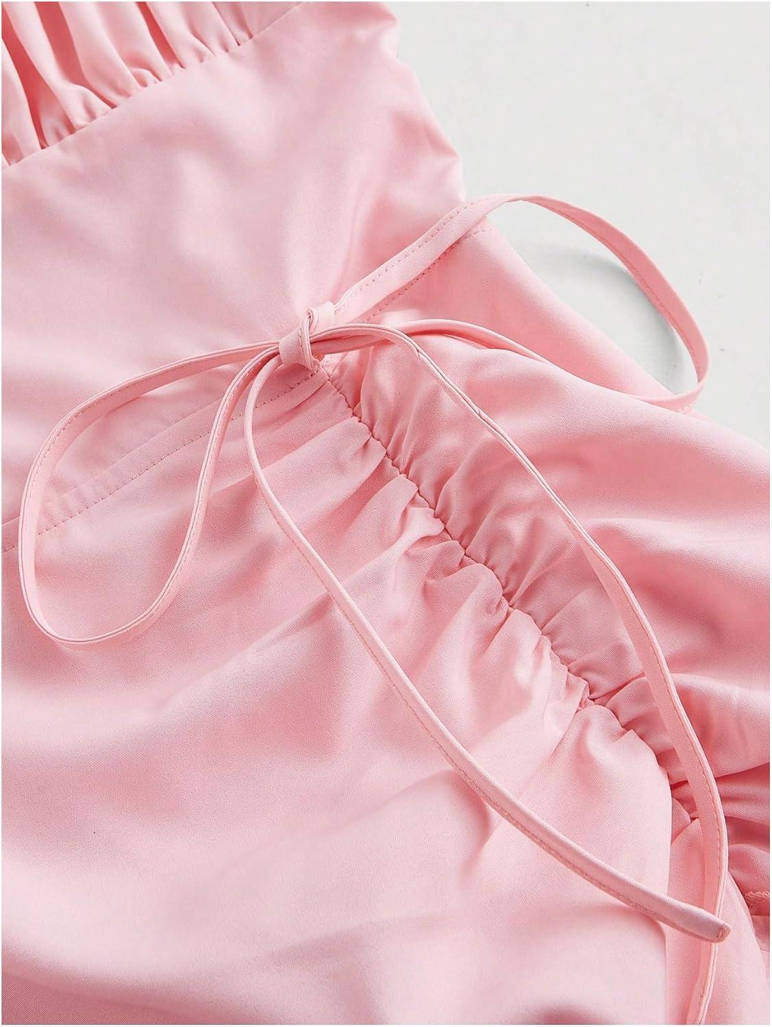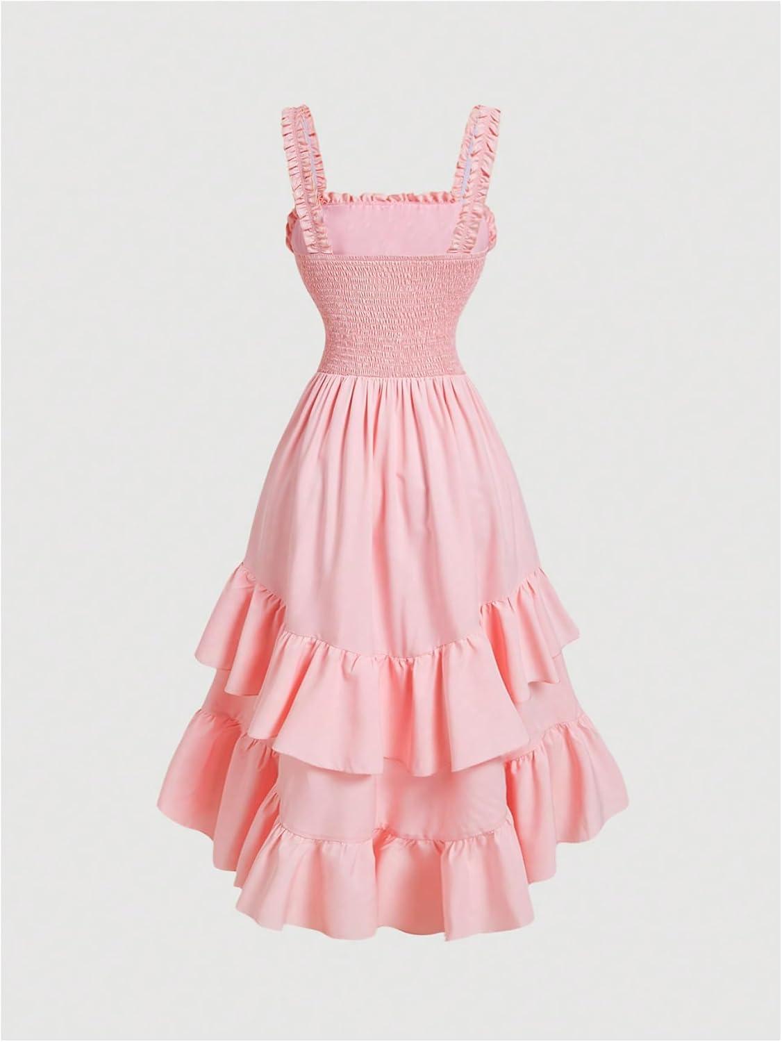 SOLY HUX Women’s Layered Ruffle Hem Dress Sleeveless Ruched Asymmetrical Long Party Dresses(Plain Light Pink)