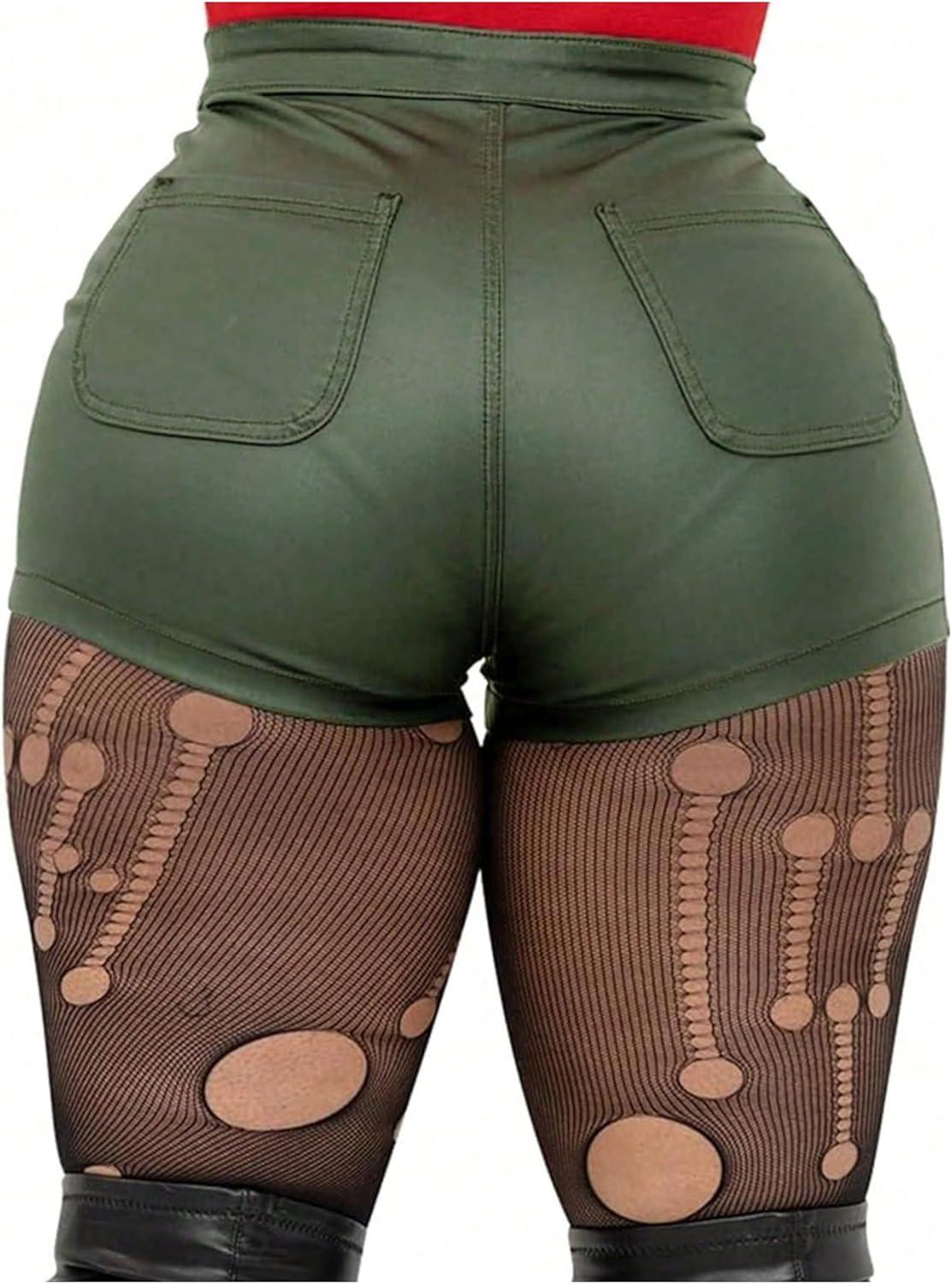 SOLY HUX Women’s Leopard Print Mini Shorts High Waisted Y2k Streetwear Booty Shorts(Plain Army Green)