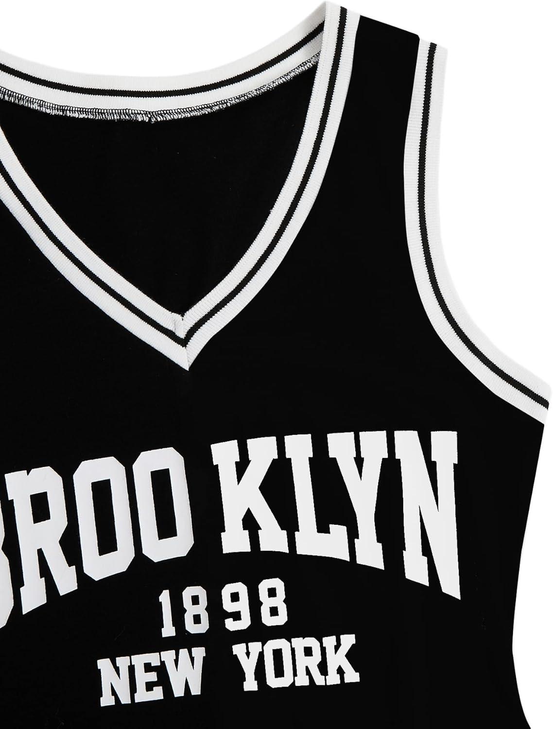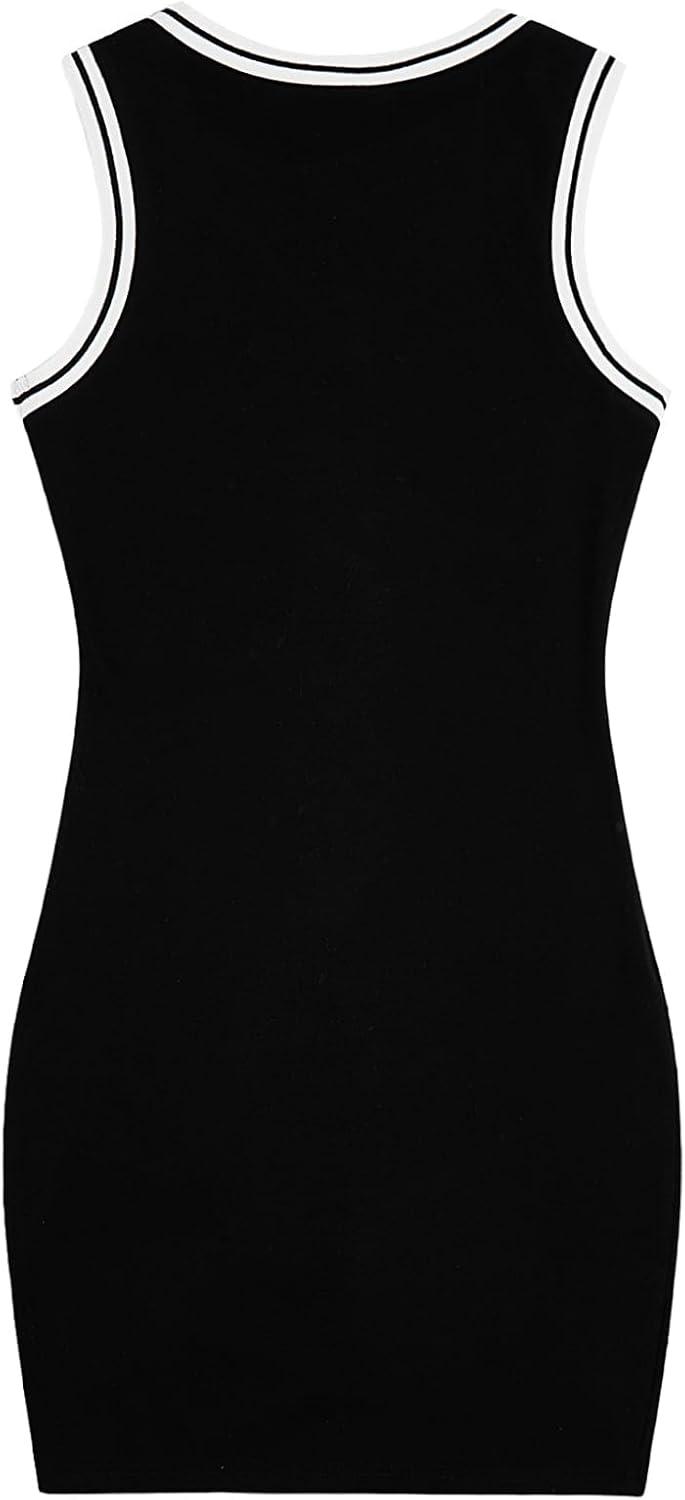 SOLY HUX Women’s Letter Graphic Print Color Block V Neck Sleeveless Bodycon Mini Dress(Black Letter)