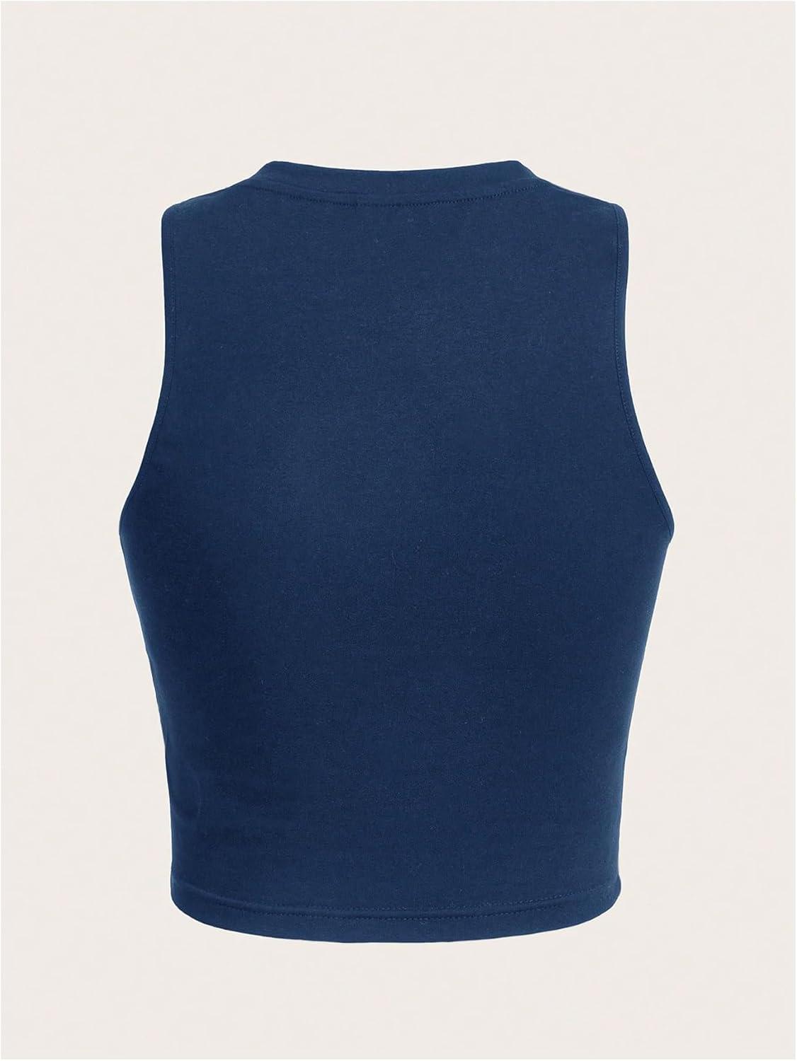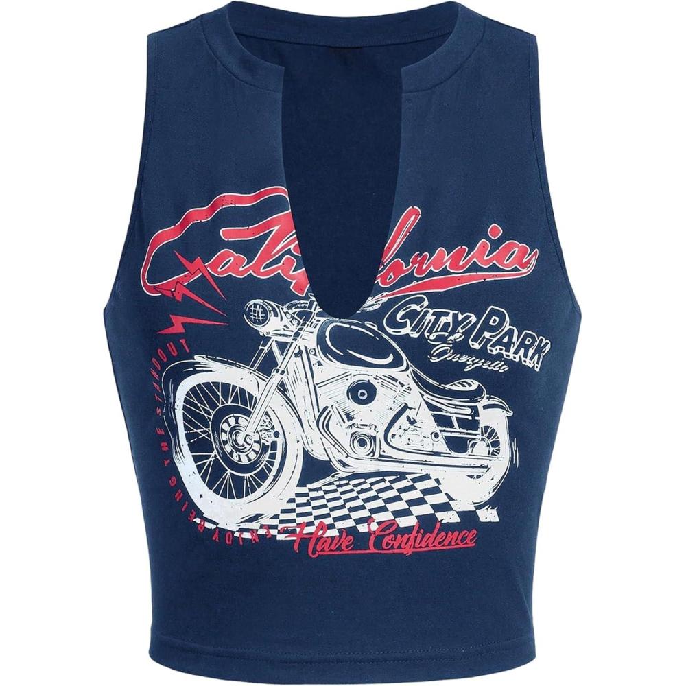 SOLY HUX Women’s Letter Graphic Tank Top Notched V Neck Sleeveless Summer Crop Tops Streetwear(Dark Blue Motorcycle)