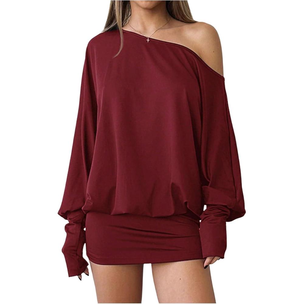 Be the first to review “SOLY HUX Women’s Long Sleeve Off The Shoulder Dress Y2k Mini Dress Streetwear Music Festival Outfits(Plain Burgundy)”
