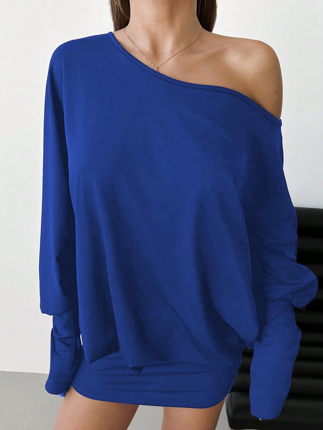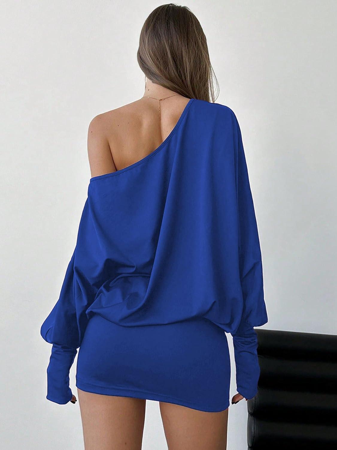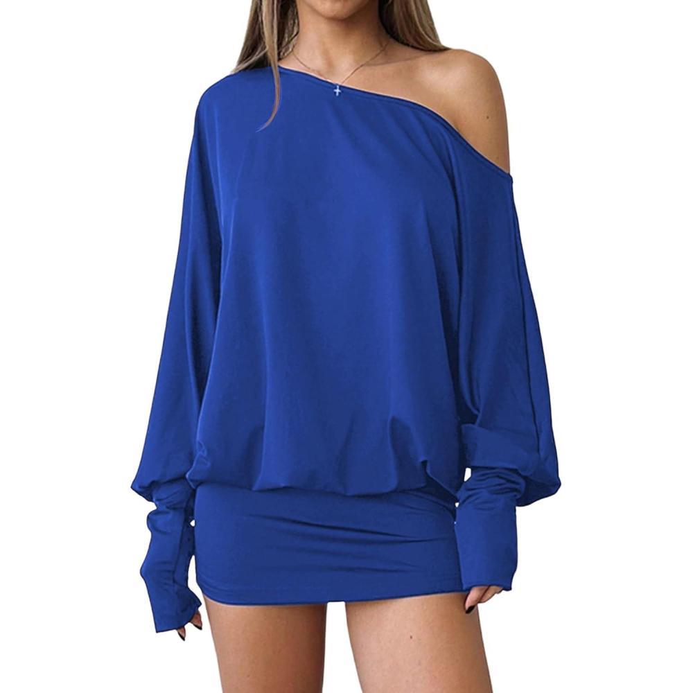 SOLY HUX Women’s Long Sleeve Off The Shoulder Dress Y2k Mini Dress Streetwear Music Festival Outfits(Royal Blue)