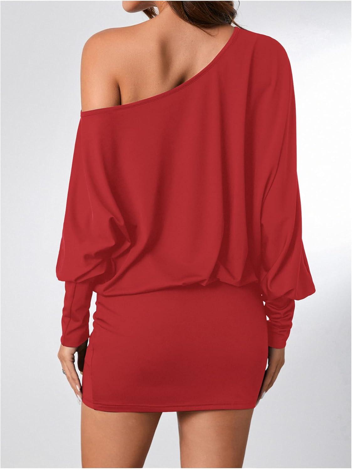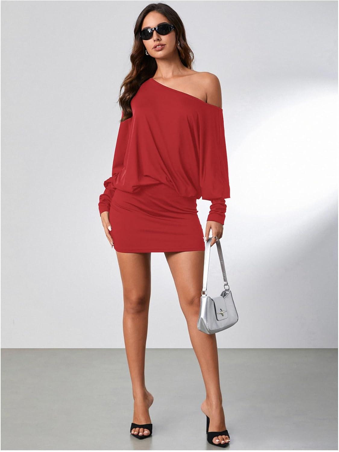 SOLY HUX Women’s Long Sleeve Off The Shoulder Dress Y2k Mini Dress Streetwear Music Festival Outfits(Solid Burgundy)