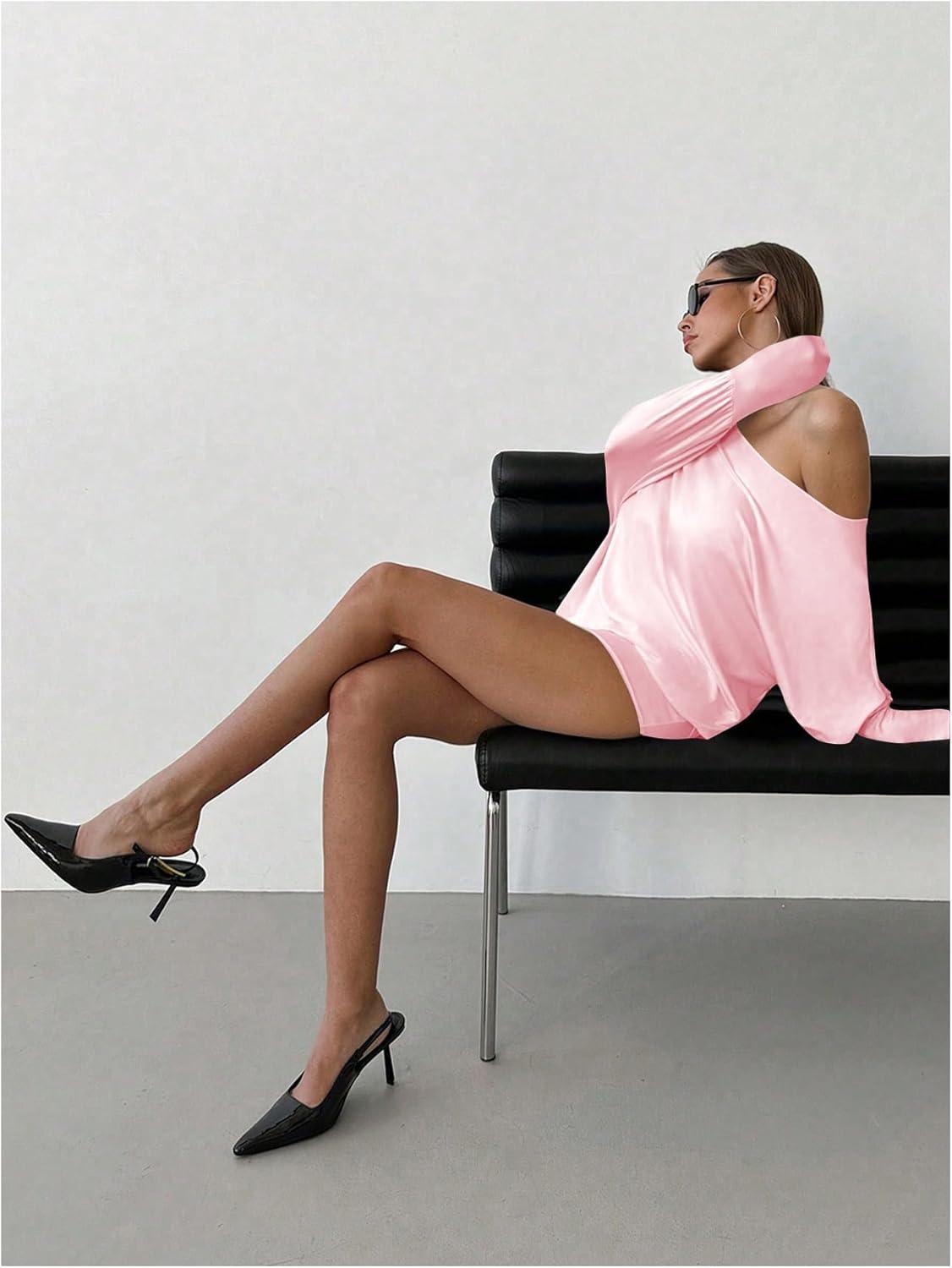 SOLY HUX Women’s Long Sleeve Off The Shoulder Dress Y2k Mini Dress Streetwear Music Festival Outfits(Solid Pink)
