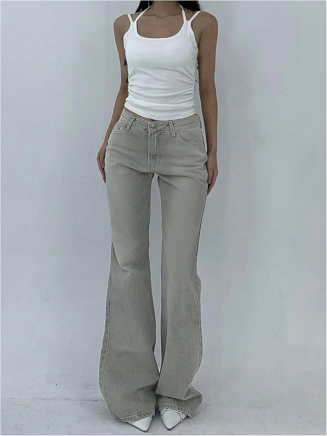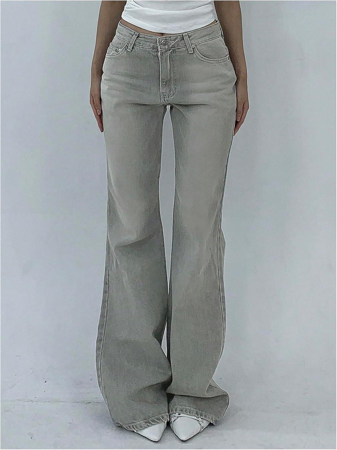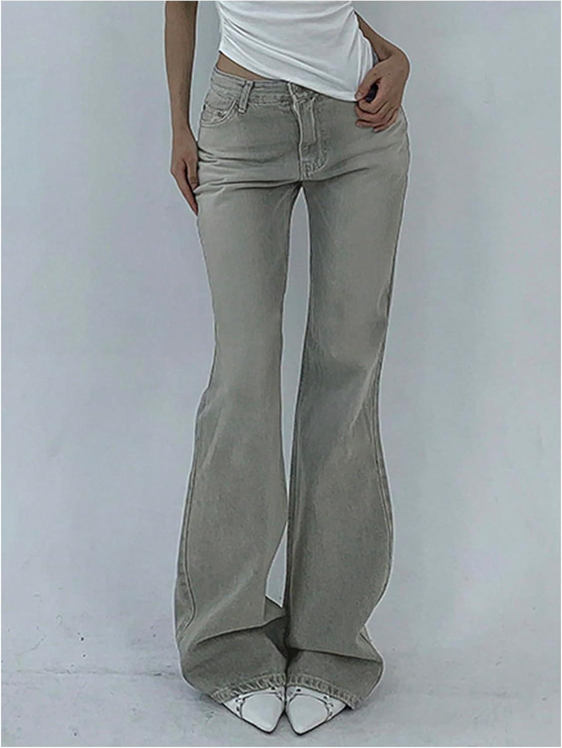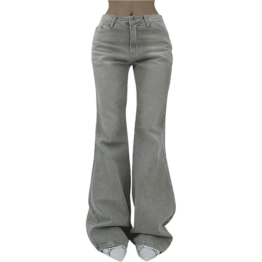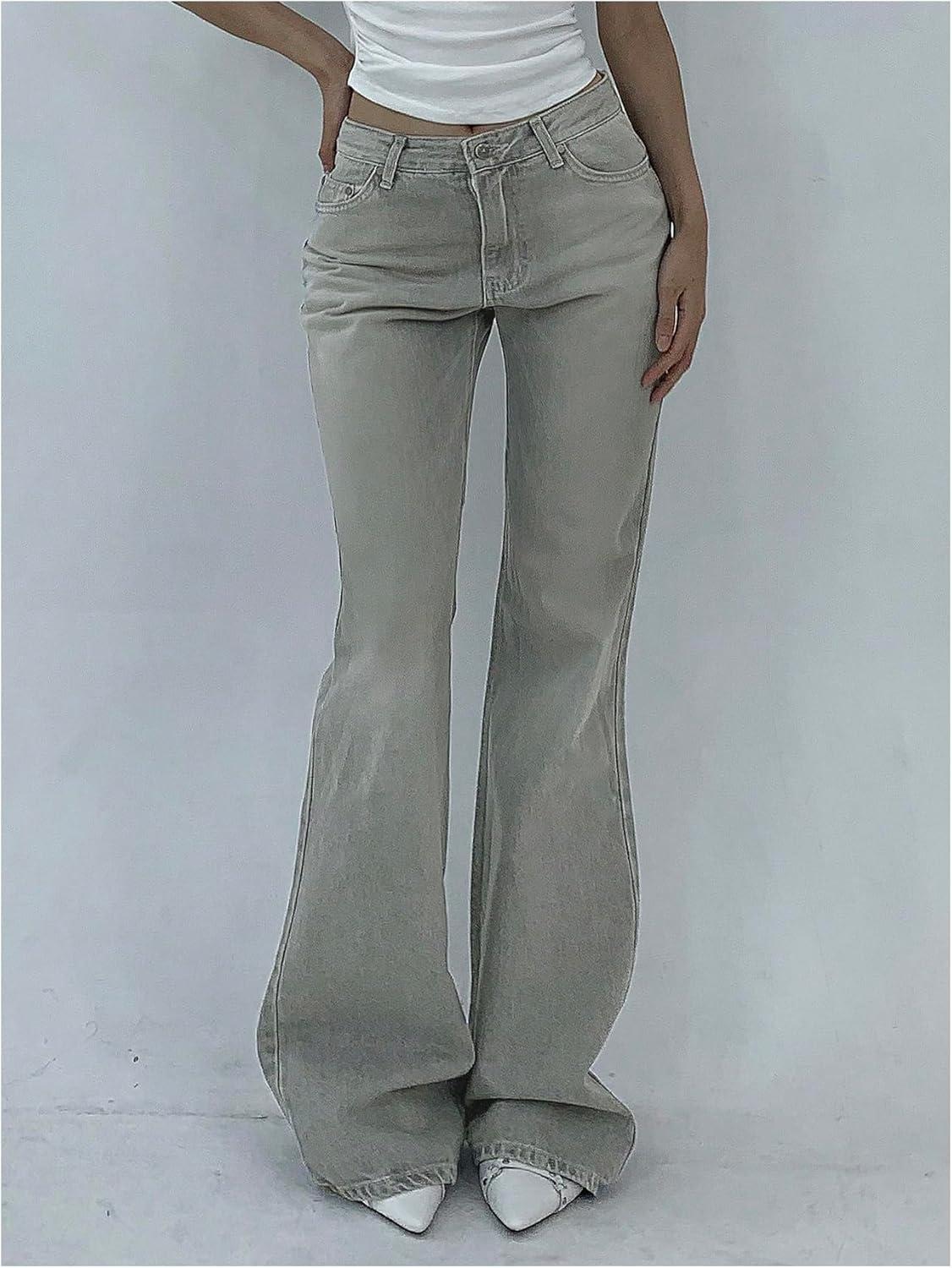 SOLY HUX Women’s Low Rise Flare Leg Stretchy Denim Pants Y2k Going Out Bell Bottom Jeans(Plain Grey)