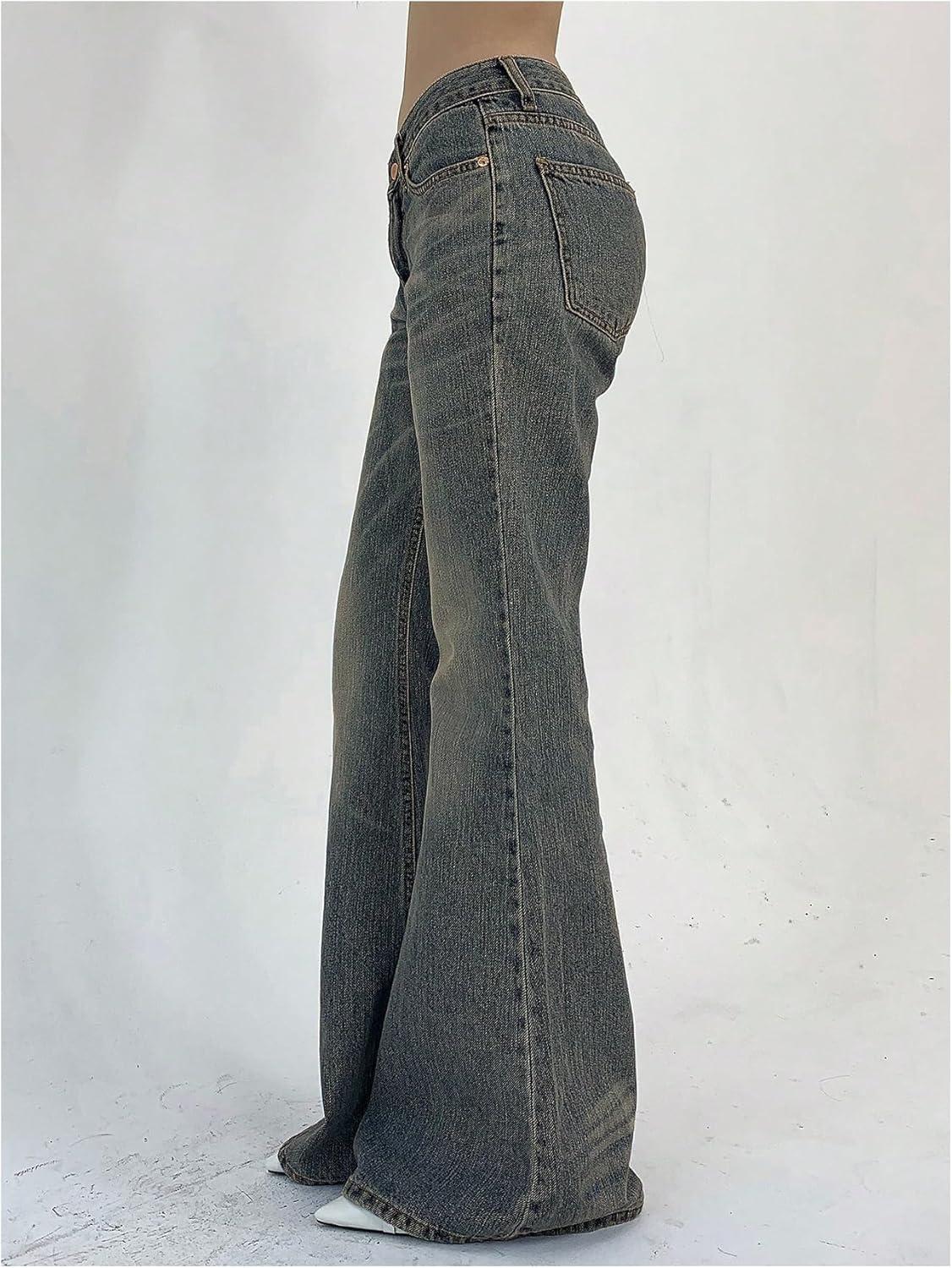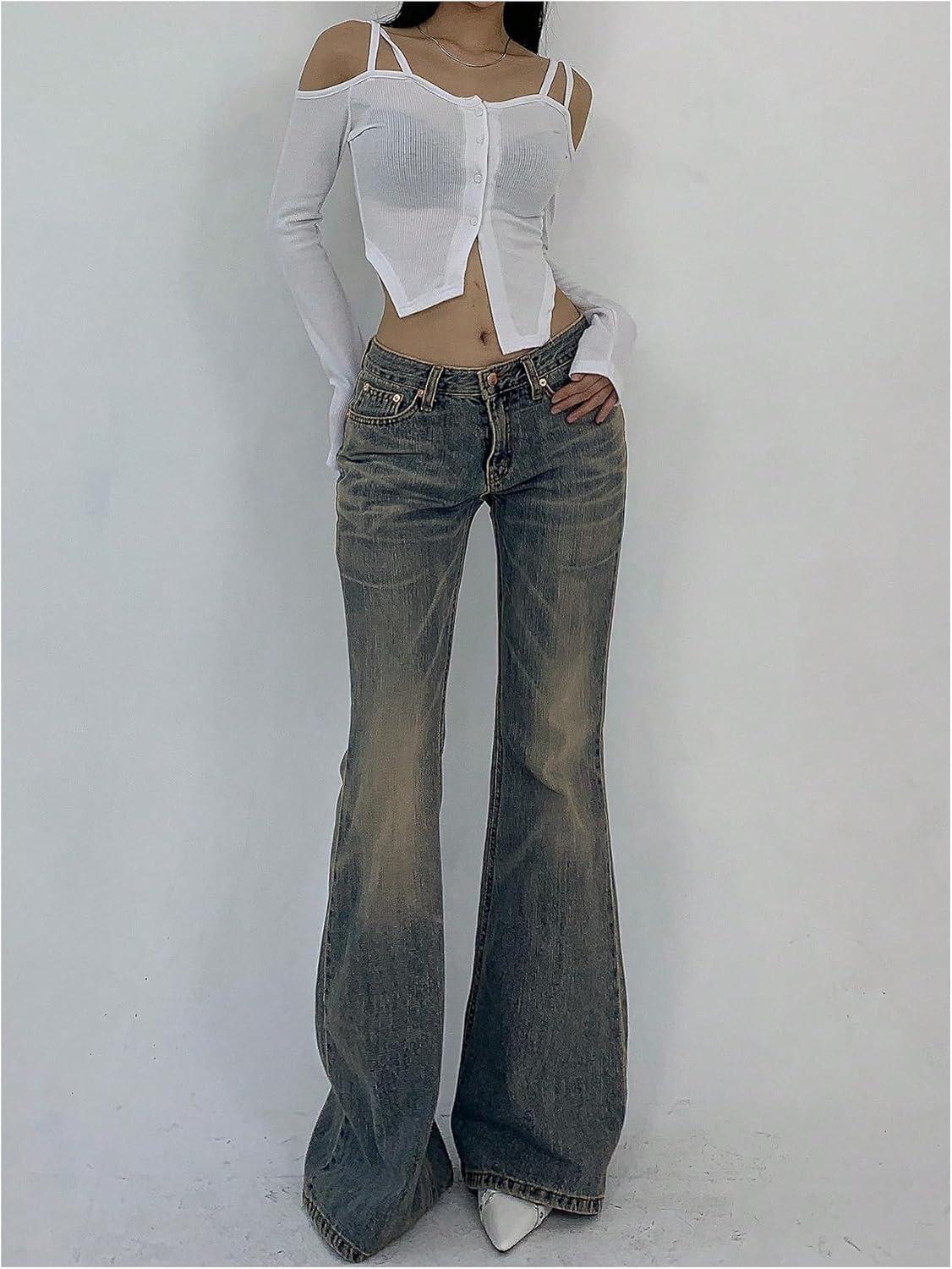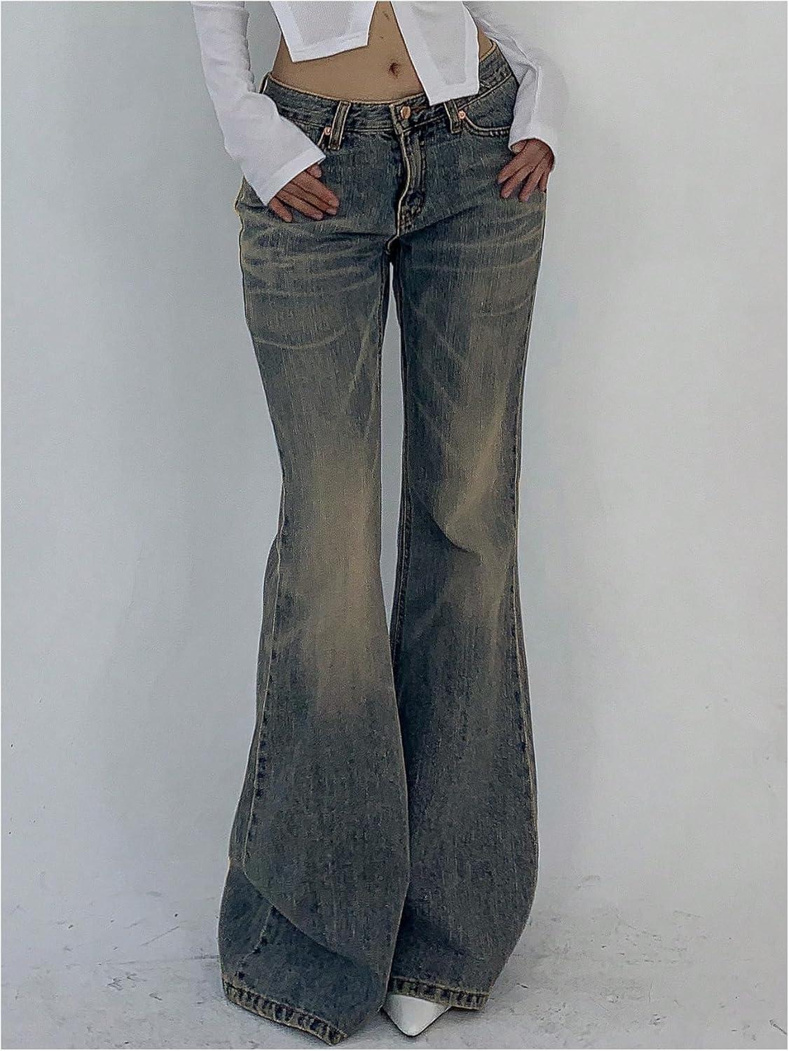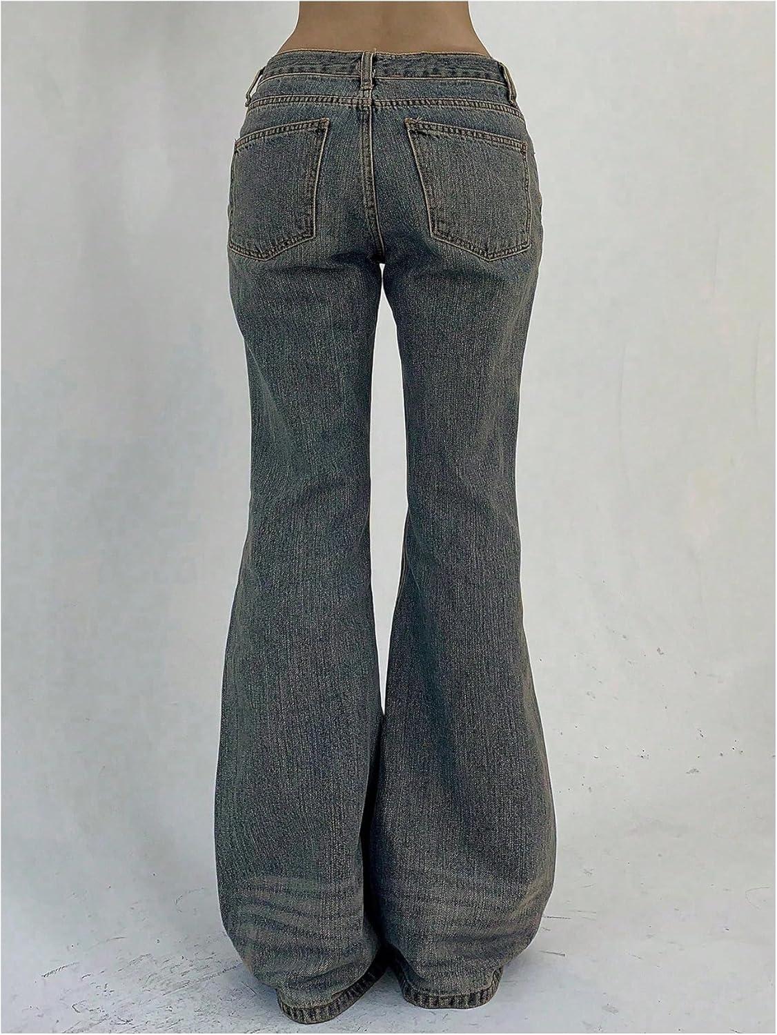 SOLY HUX Women’s Low Rise Flare Leg Stretchy Denim Pants Y2k Going Out Bell Bottom Jeans(Plain Medium Blue)