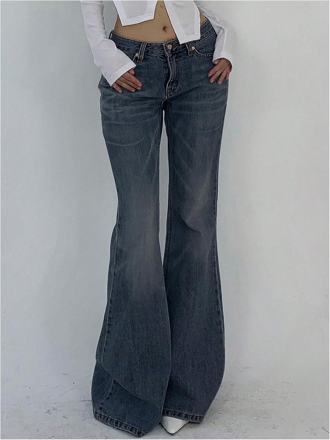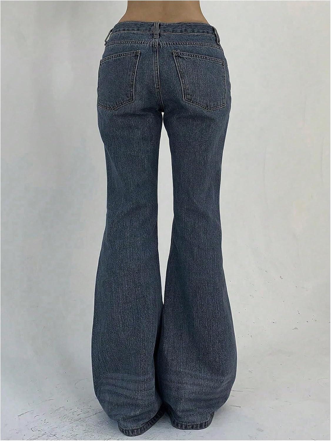 SOLY HUX Women’s Low Rise Flare Leg Stretchy Denim Pants Y2k Going Out Bell Bottom Jeans(Solid Medium Blue)