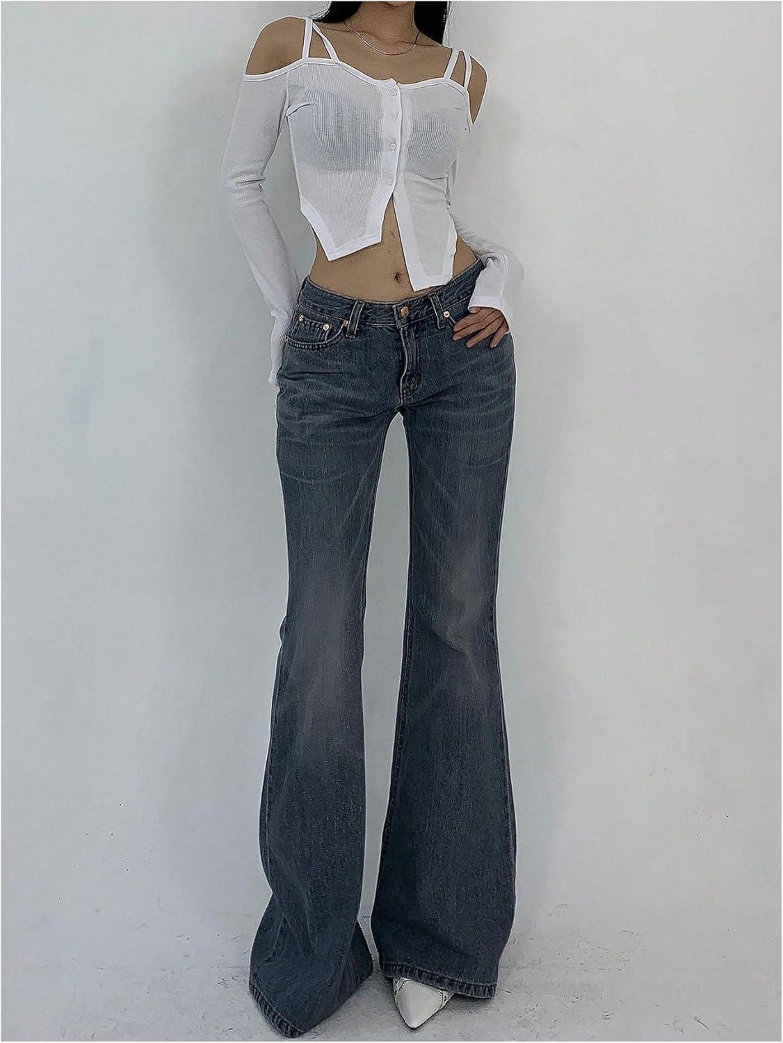 SOLY HUX Women’s Low Rise Flare Leg Stretchy Denim Pants Y2k Going Out Bell Bottom Jeans(Solid Grey)