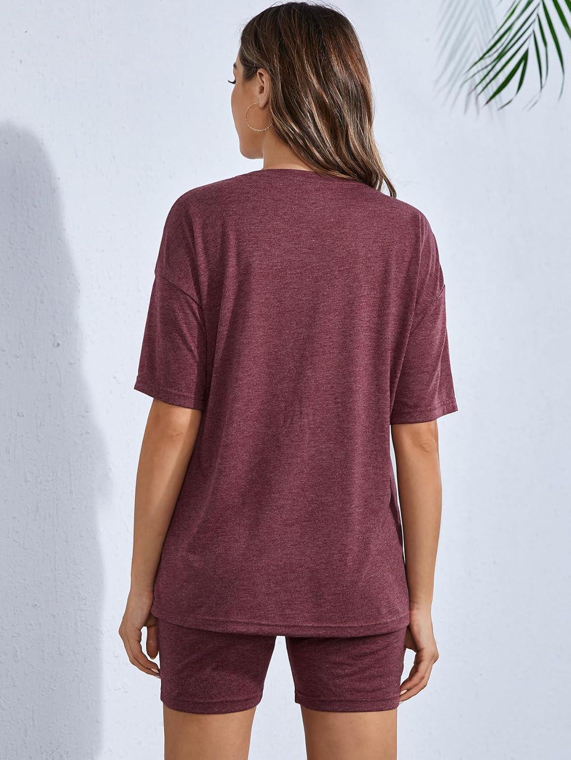 SOLY HUX Women’s Maternity Sets 2 Piece Pajamas Outfits Short Sleeve Top and Adjustable Elastic Waist Shorts(Solid Burgundy)