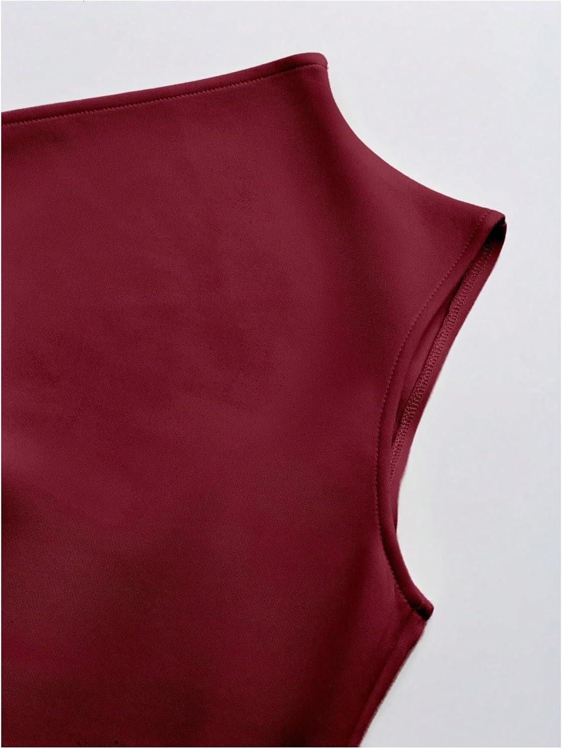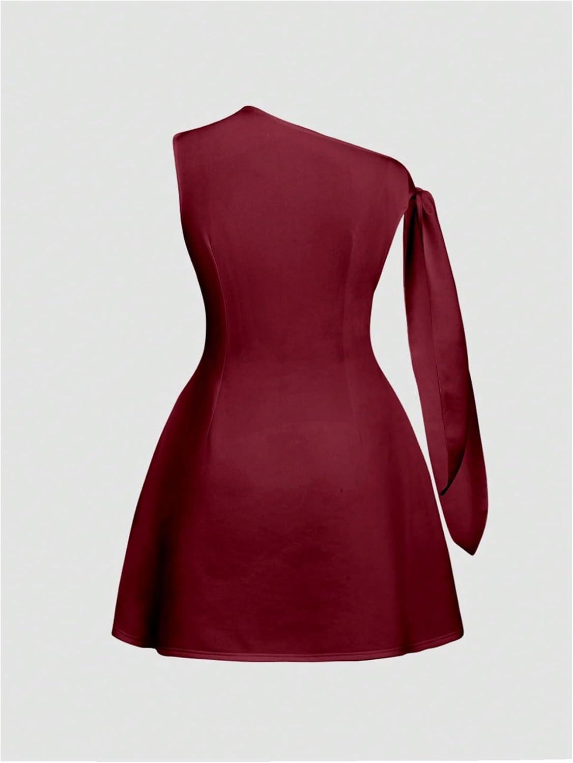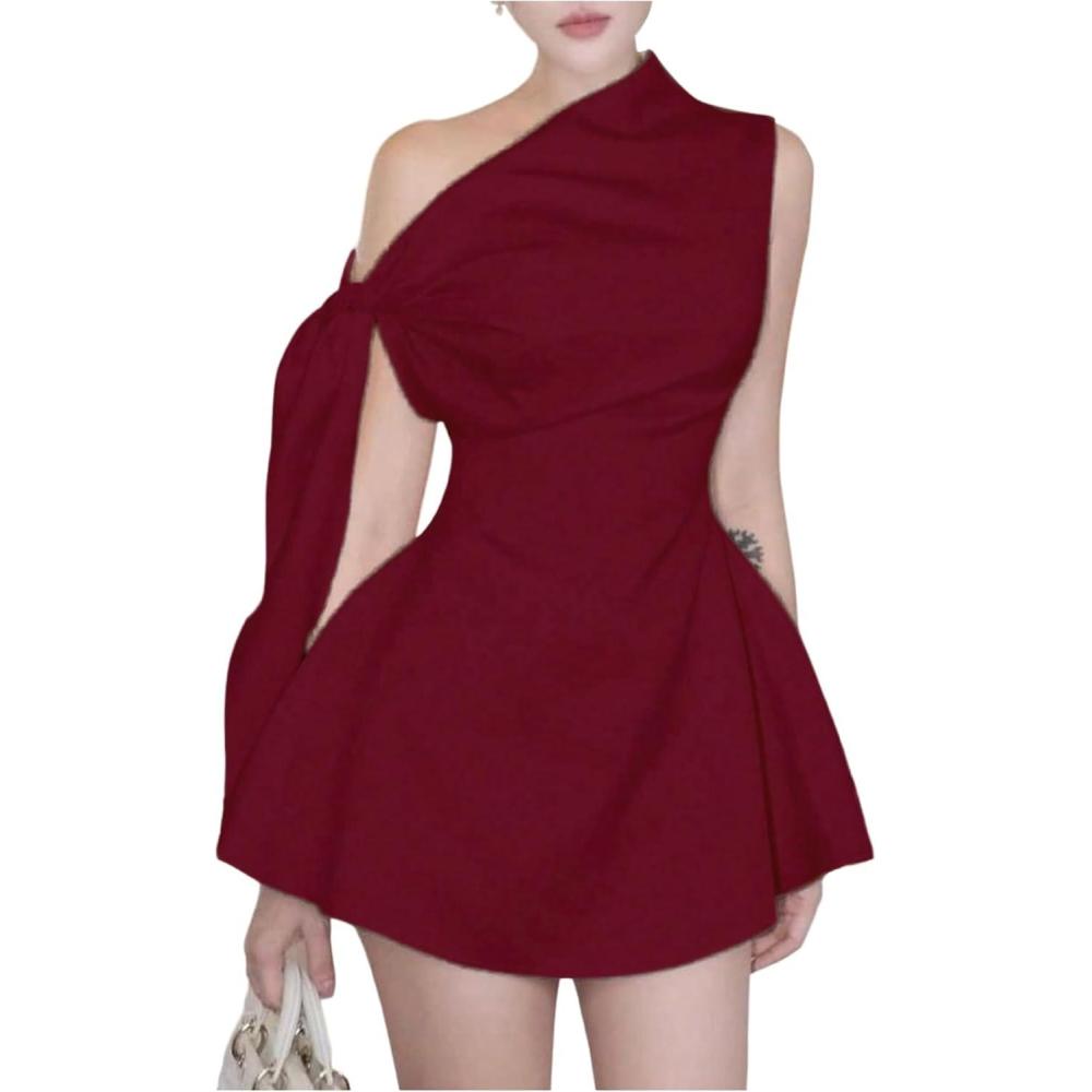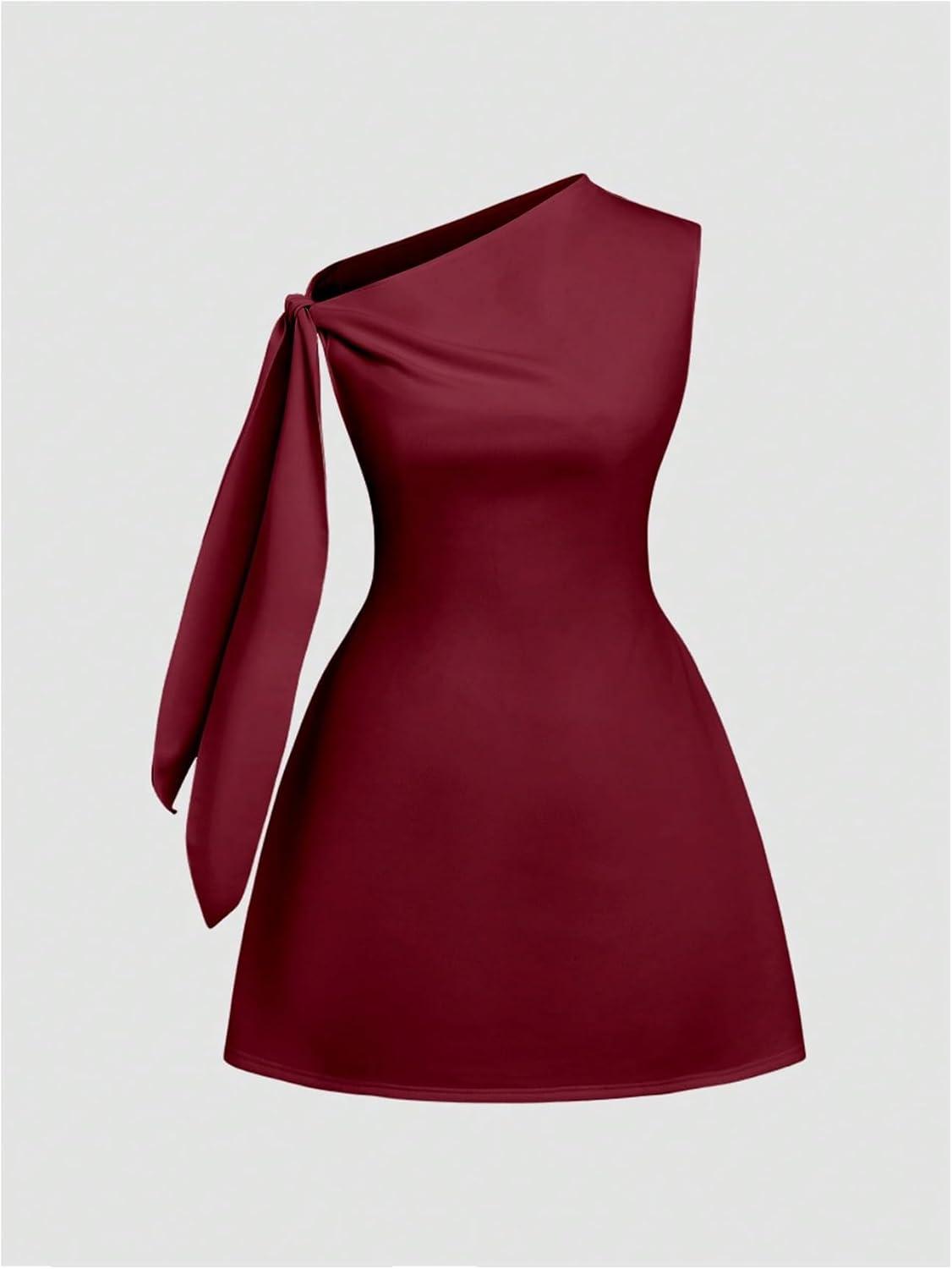 SOLY HUX Women’s Mini Dress Off The Shoulder Sleeveless Tie Shoulder A Line Flared Party Dresses(Plain Burgundy)