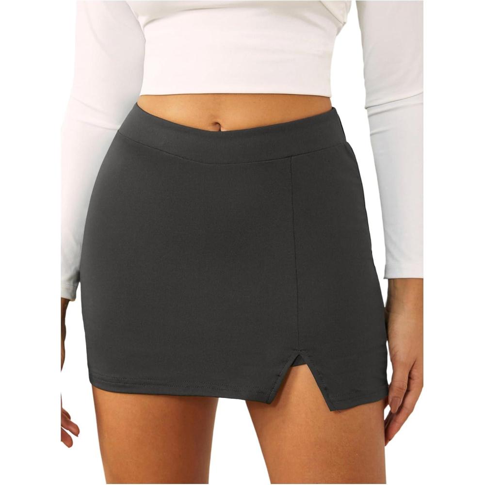 SOLY HUX Women’s Mini Skirt Skorts Y2k Split Zipper Side Stretchy Pencil Bodycon Skirts with Shorts Underneath(Plain Dark Grey)