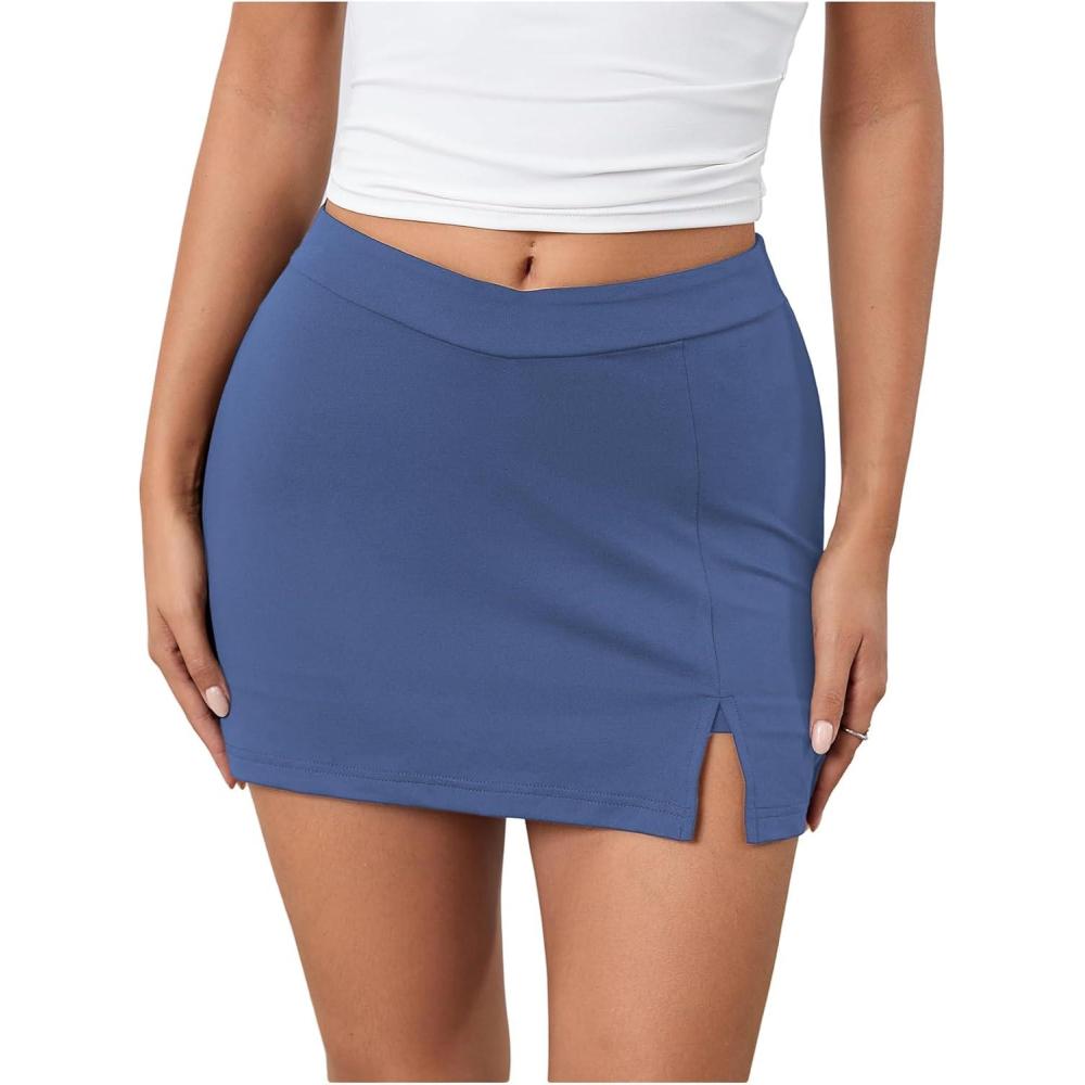 SOLY HUX Women’s Mini Skirt Skorts Y2k Split Zipper Side Stretchy Pencil Bodycon Skirts with Shorts Underneath(Solid Dusty Blue)