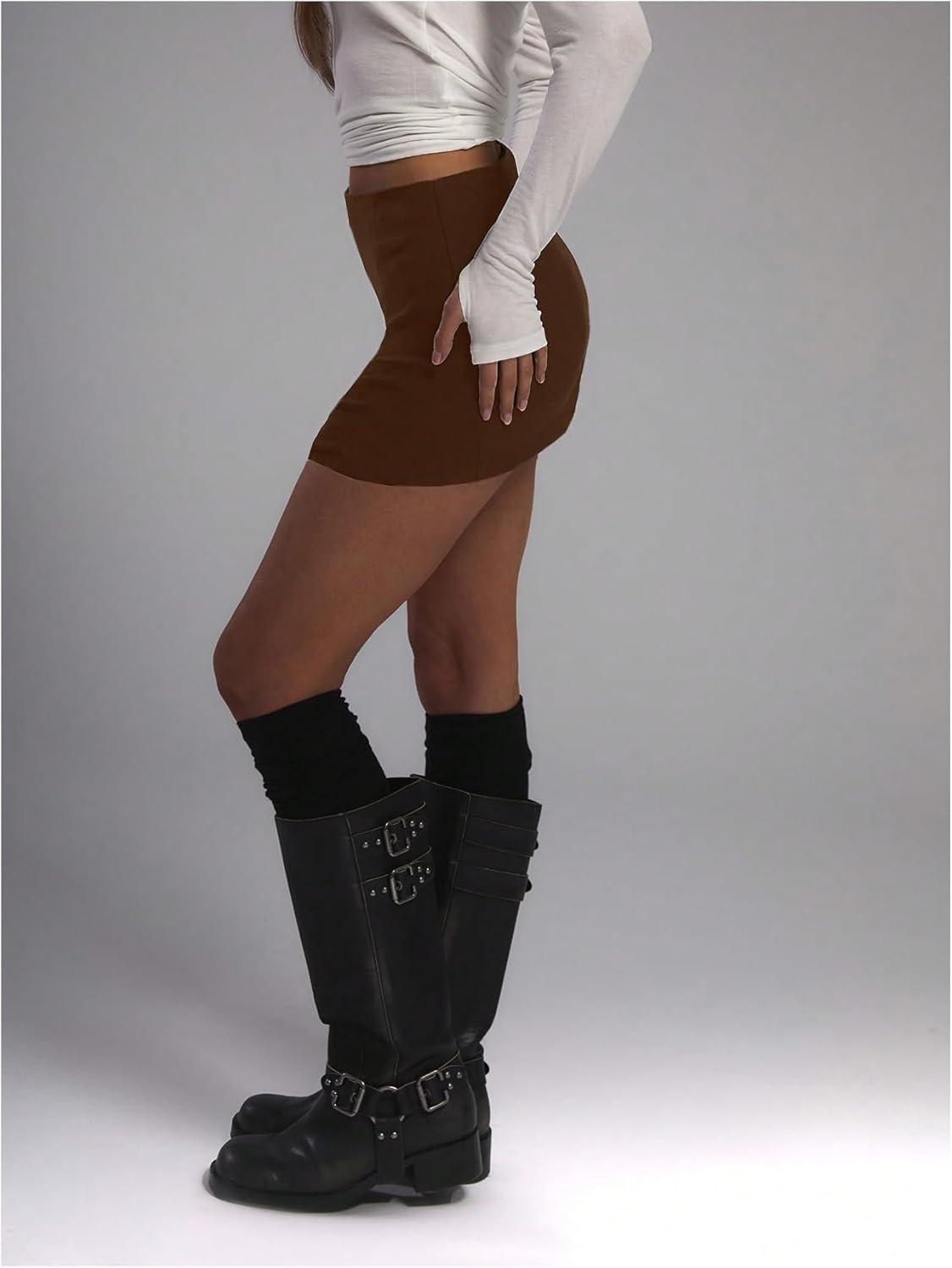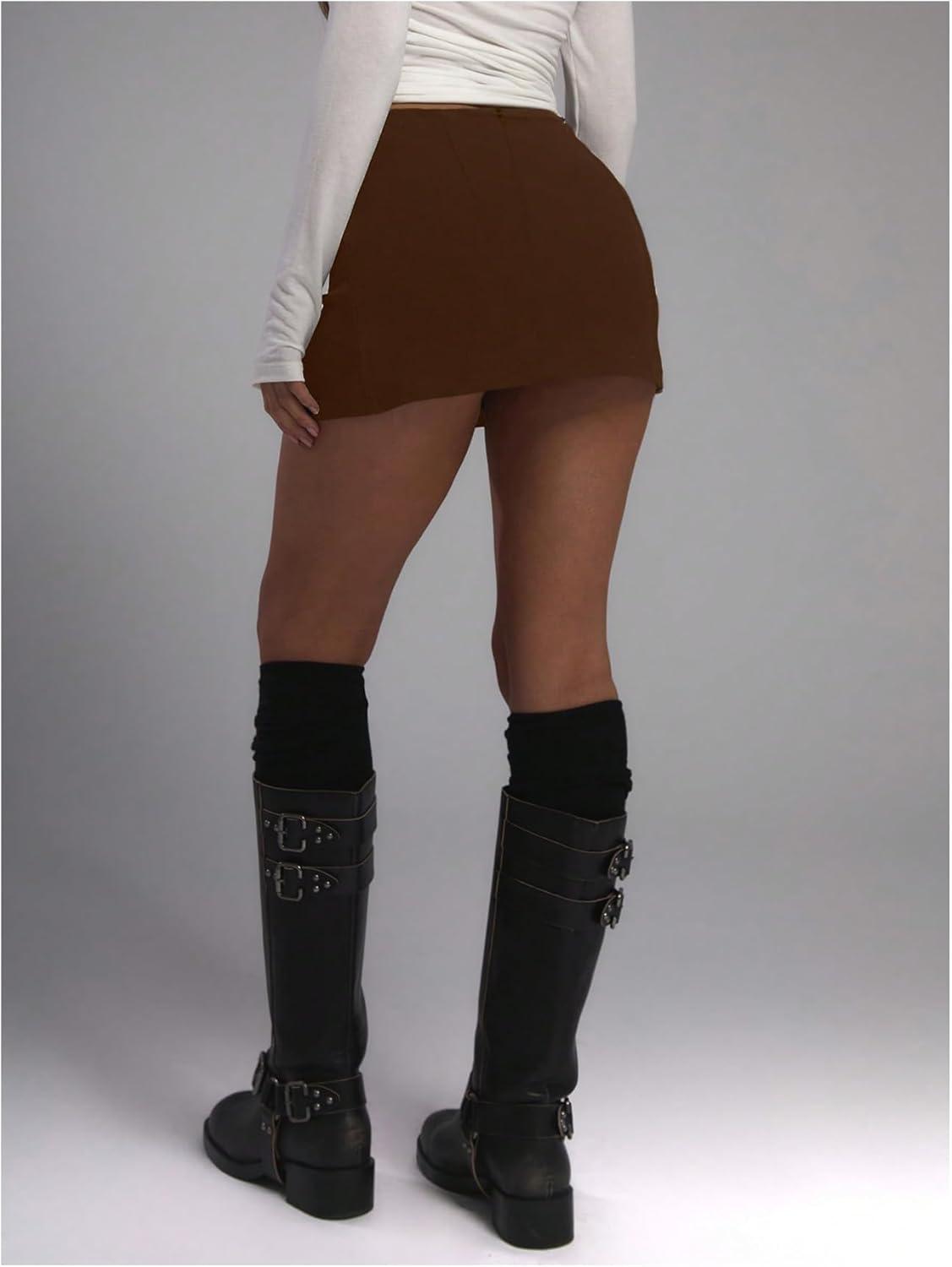 SOLY HUX Women’s Mini Skirt Y2k Low Rise A Line Casual Summer Skirts(Plain Chocolate Brown)