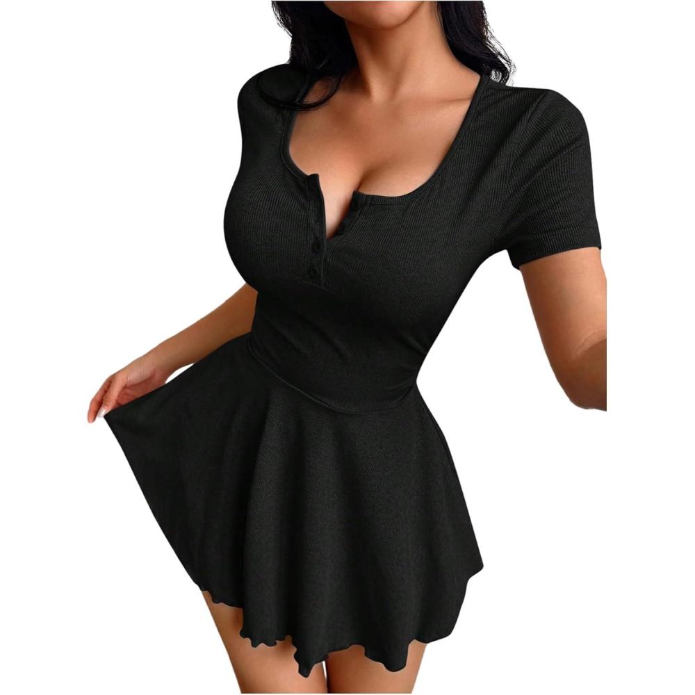 Be the first to review “SOLY HUX Women’s Nightgown Scoop Neck Short Sleeve Mini Dress Knit Nightdress Sleepwear(Plain Black)”