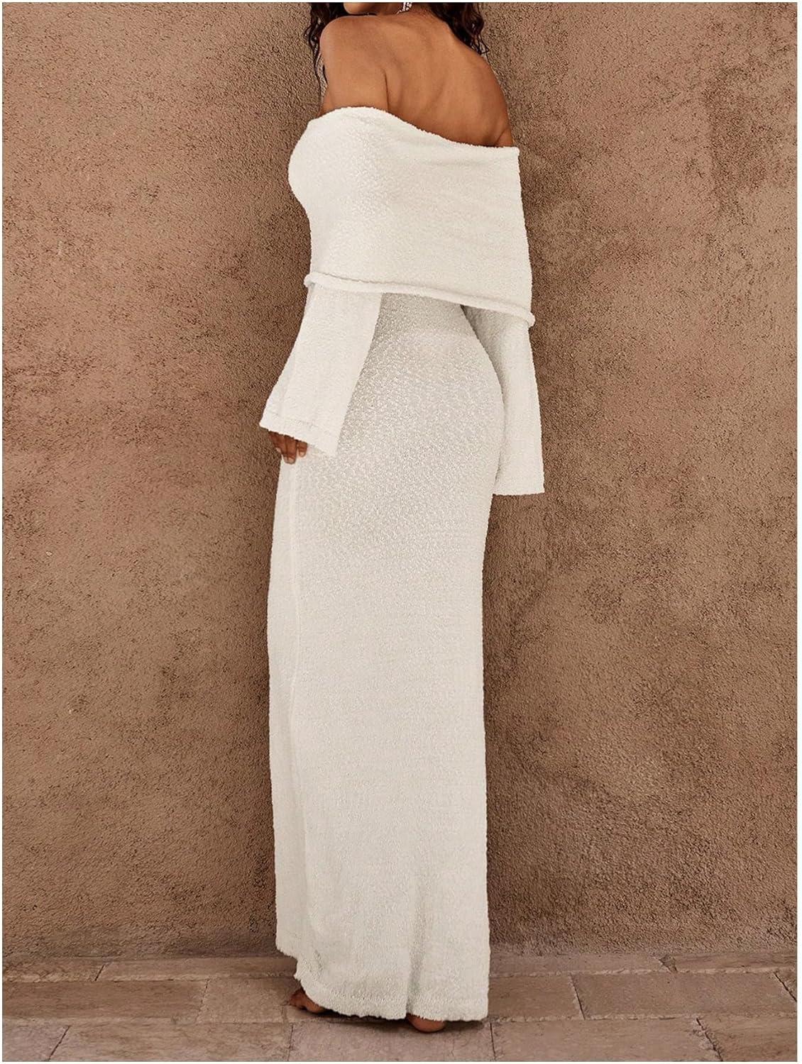 SOLY HUX Women’s Off The Shoulder Long Sleeve Sweater Dress Party Formal Bodycon Maxi Dresses(Plain Beige)