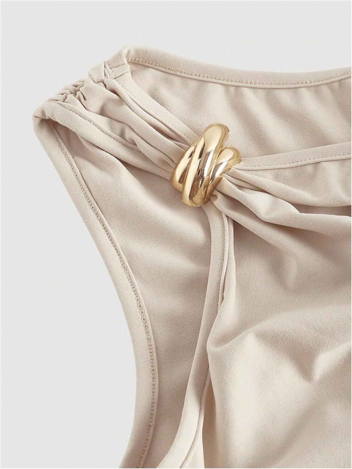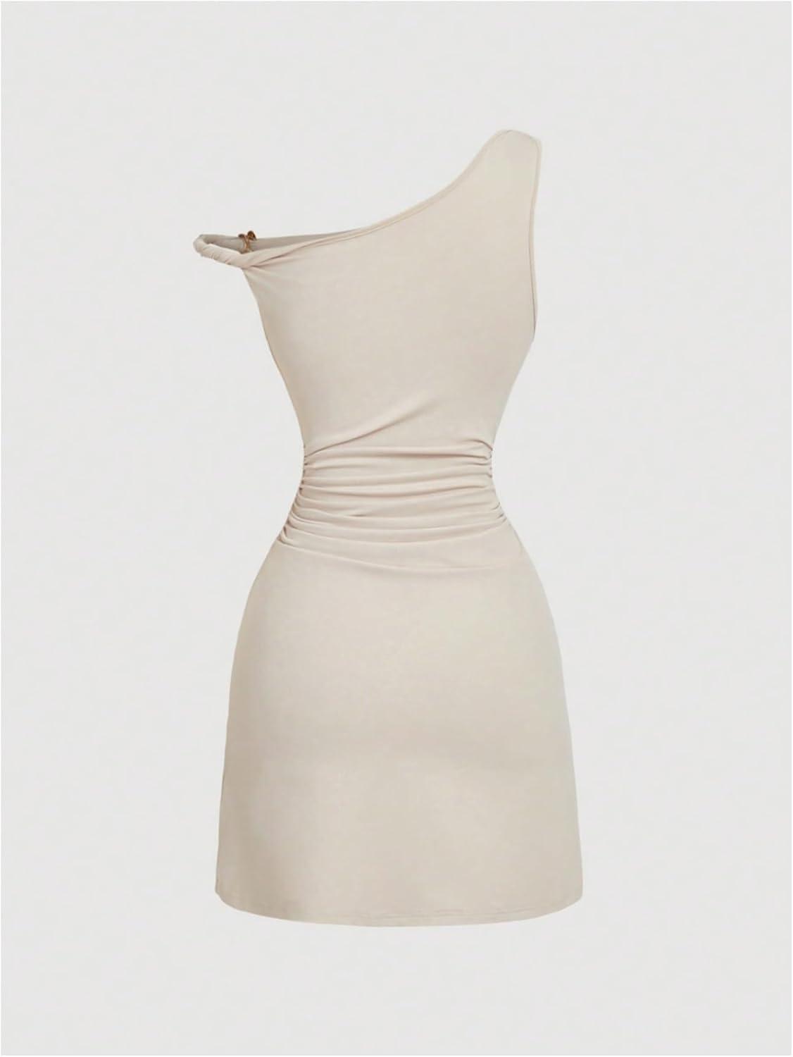 SOLY HUX Women’s Off The Shoulder Ruched Bodycon Mini Dress Y2k Party Sleeveless Sundresses(Plain Beige)