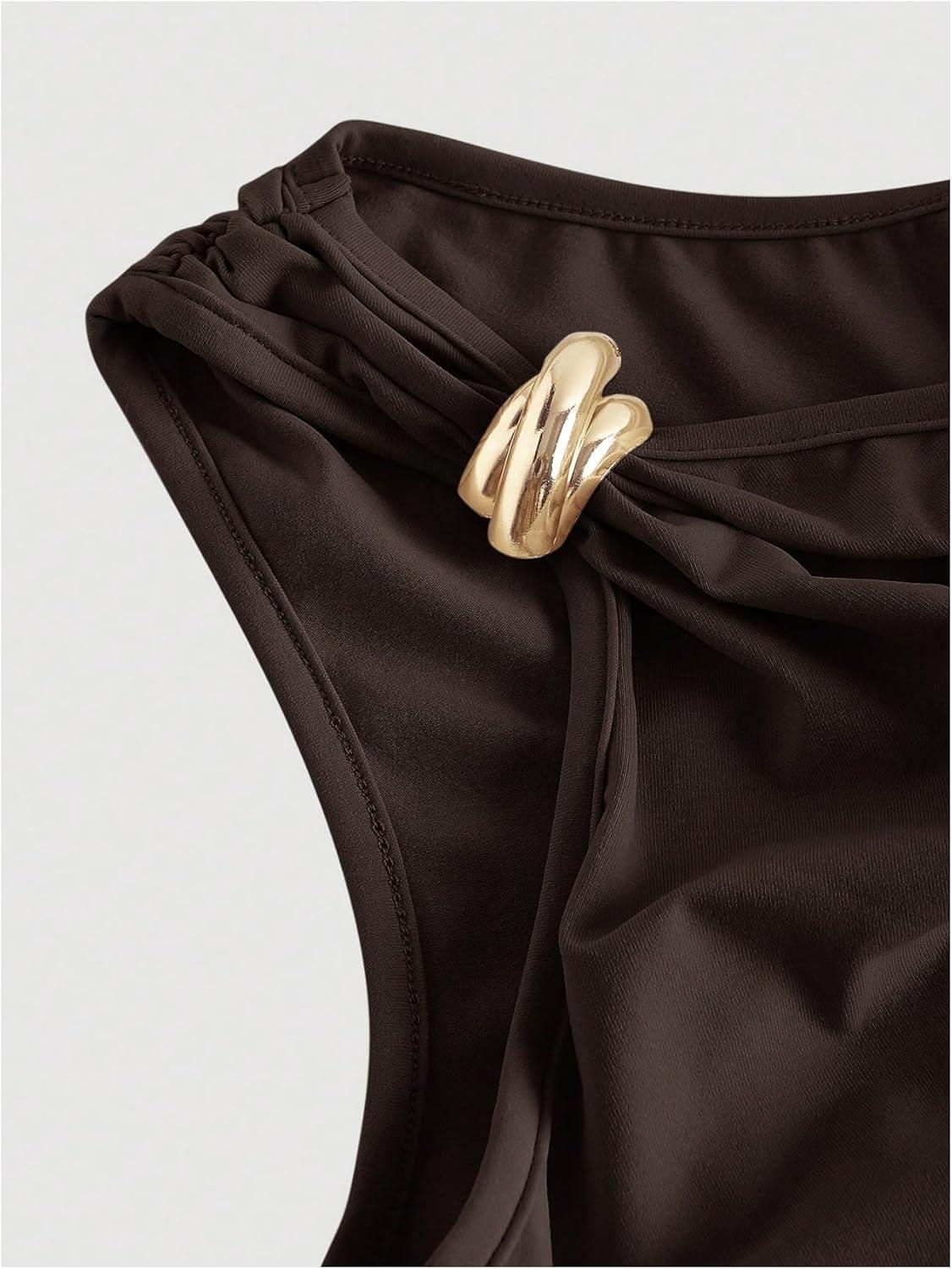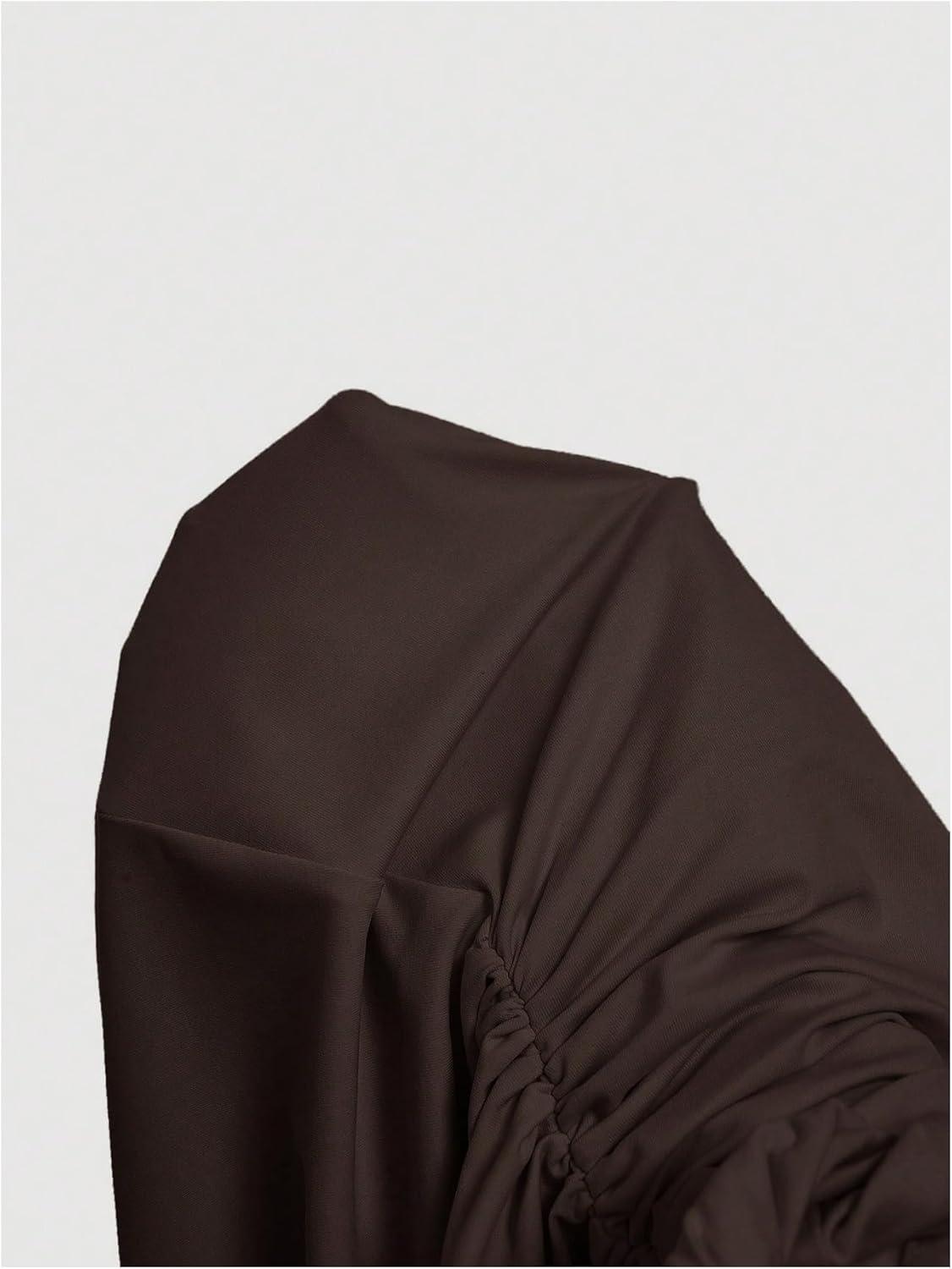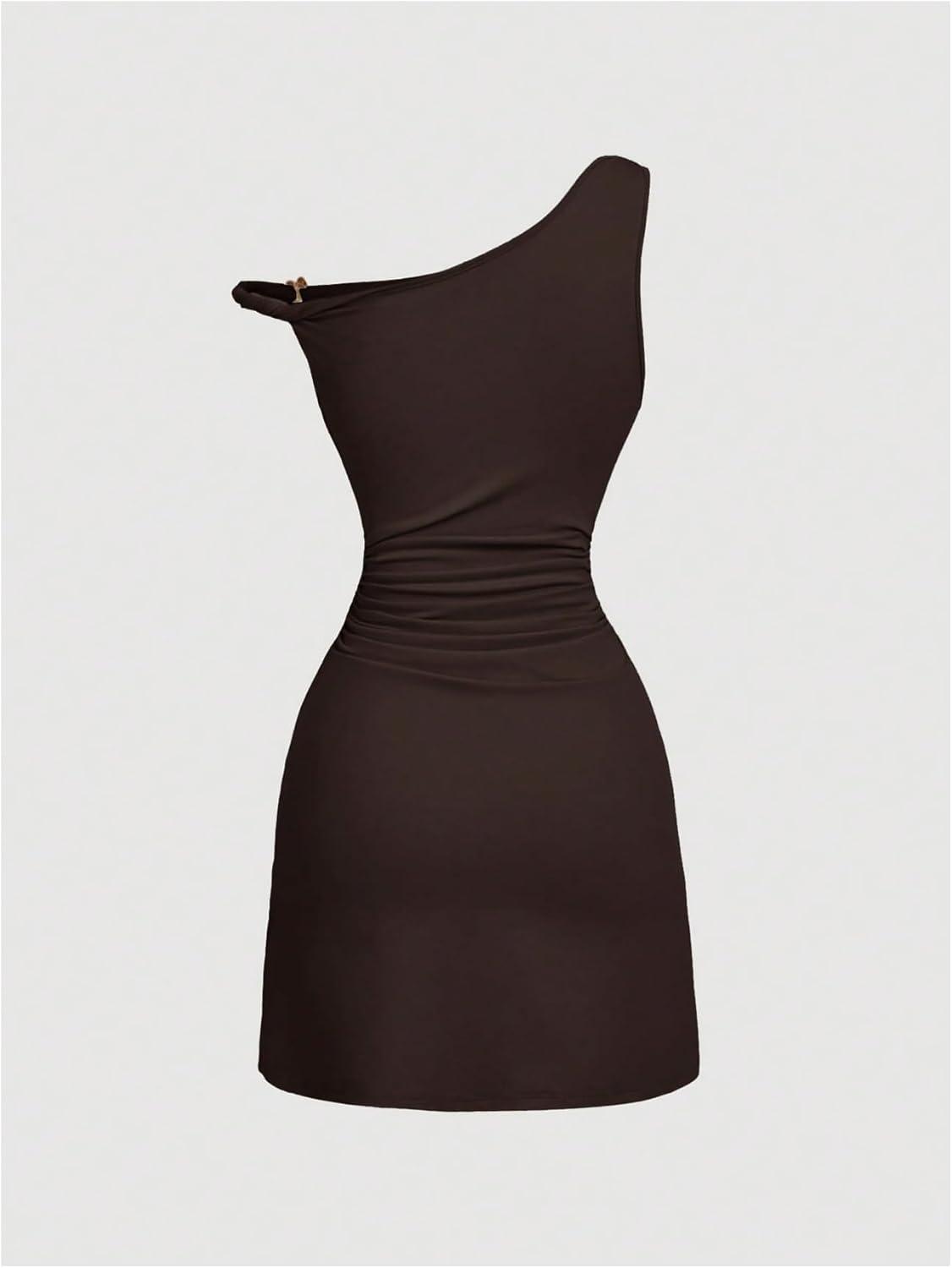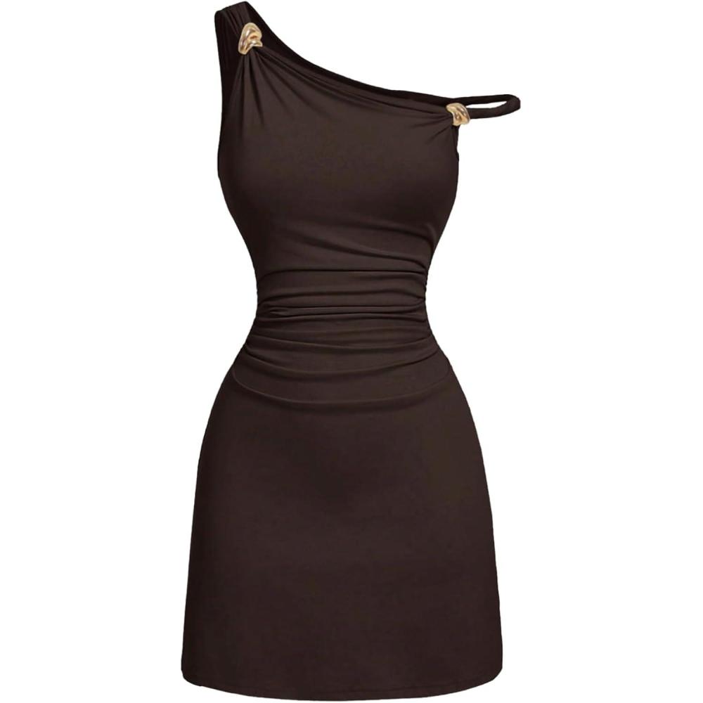 SOLY HUX Women’s Off The Shoulder Ruched Bodycon Mini Dress Y2k Party Sleeveless Sundresses(Plain Brown)