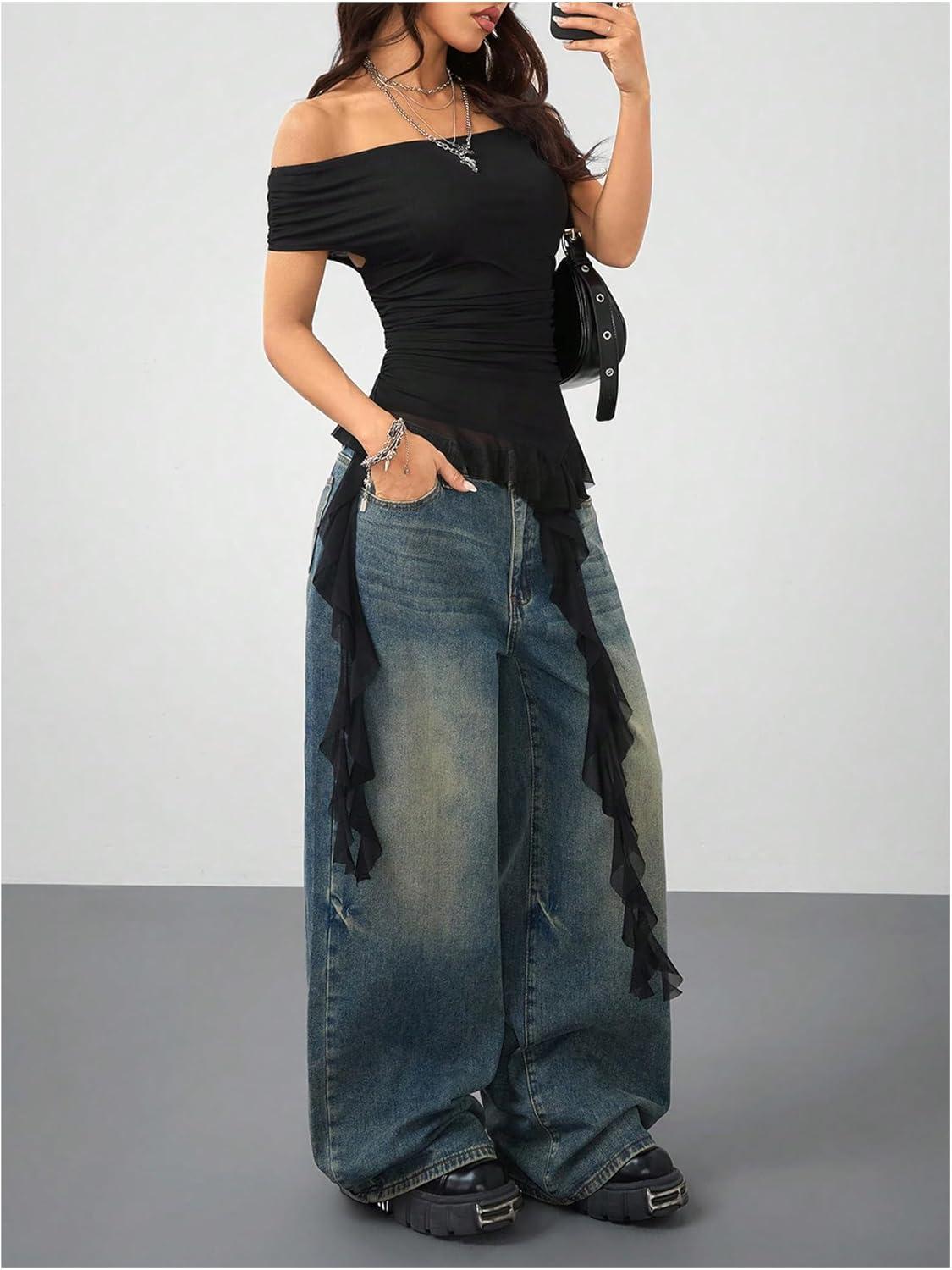 Score big on SOLY HUX Women’s Off The Shoulder T Shirt Cap Sleeve Ruffle Asymmetrical Hem Ruched Tee Y2k Summer Tops(Solid Black) and accessories during our BOGO sale. Buy one, get one 50% off!