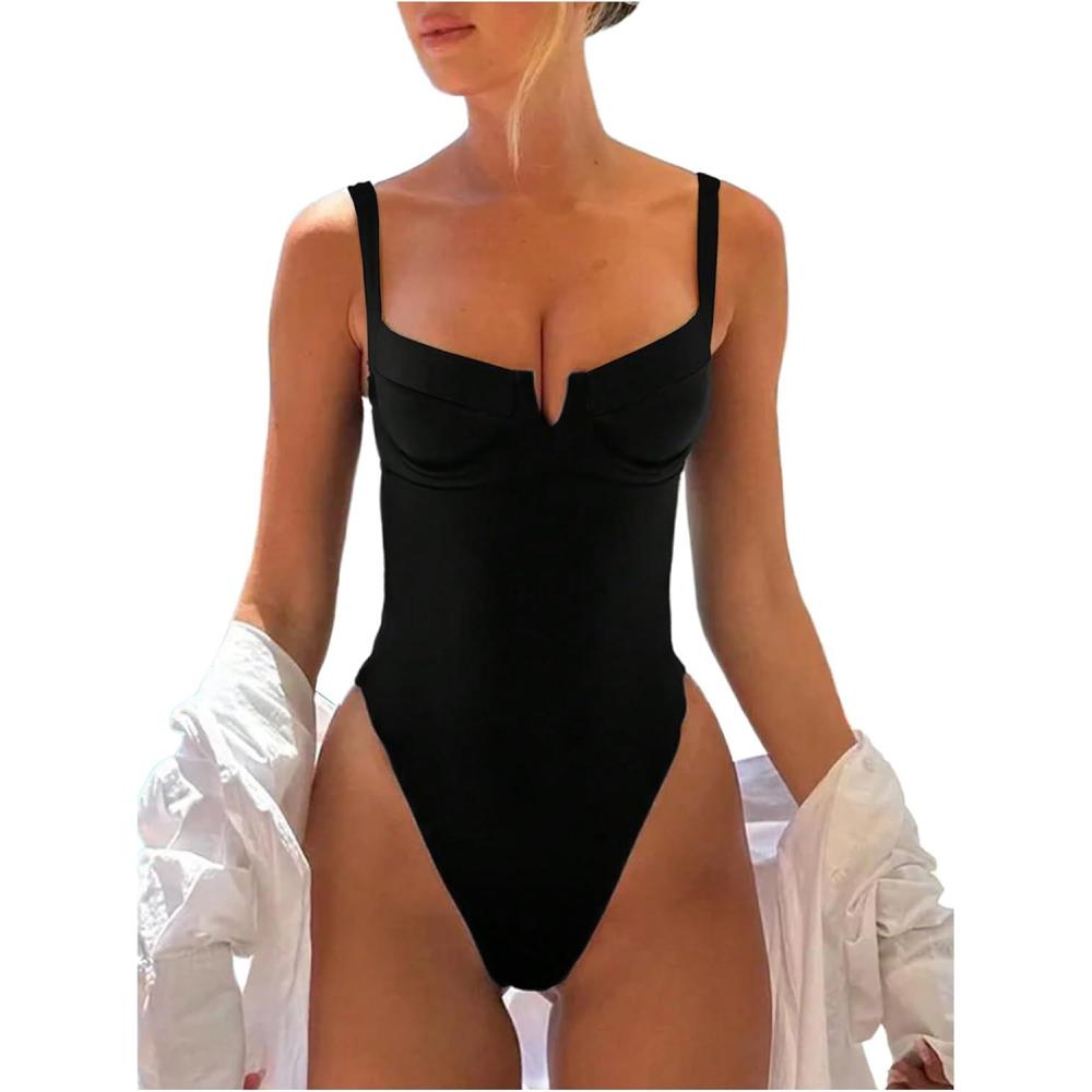 SOLY HUX Women’s One Piece Bathing Suits High Cut Swimwear Push Up Bathing Suits Beach Vacation Clothes(Solid Black)