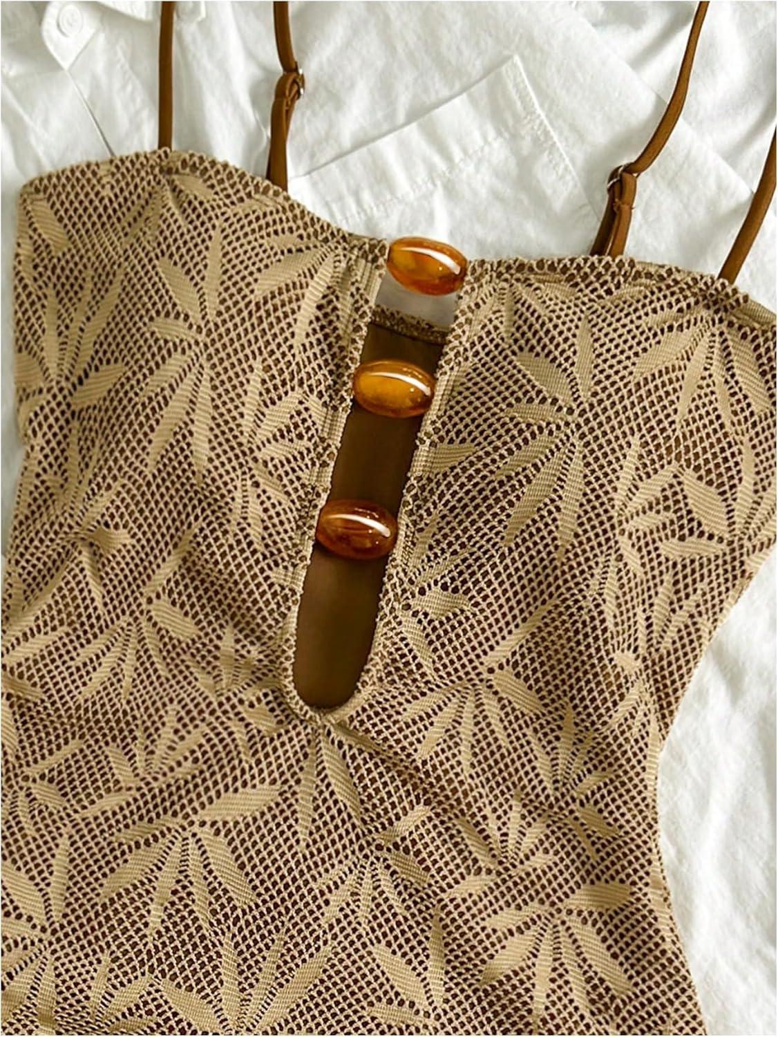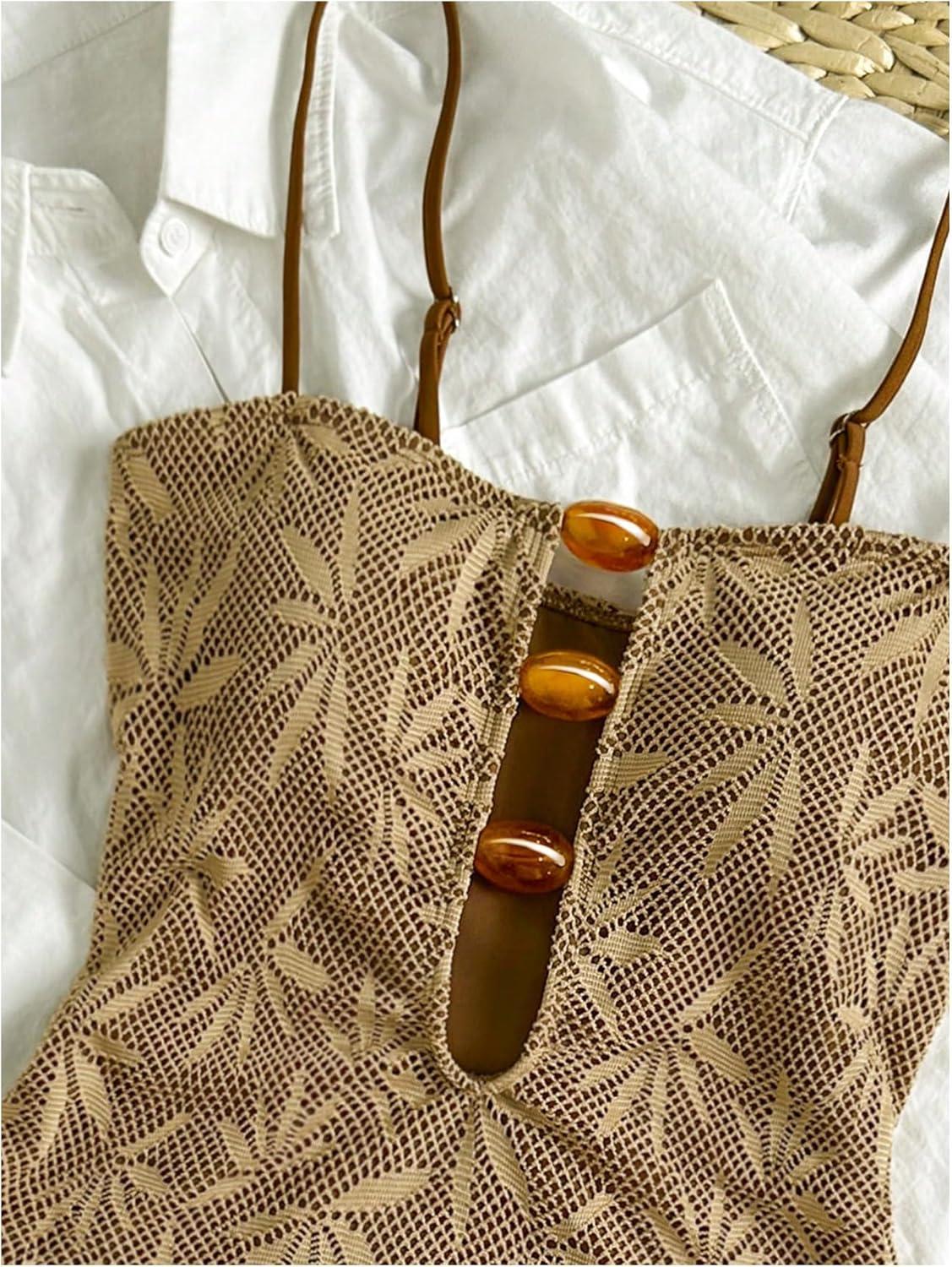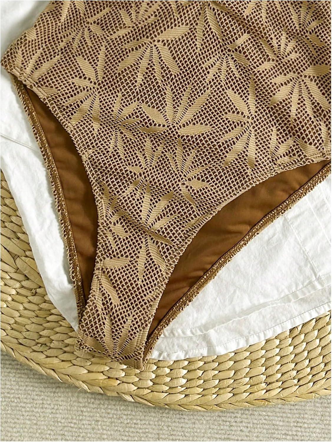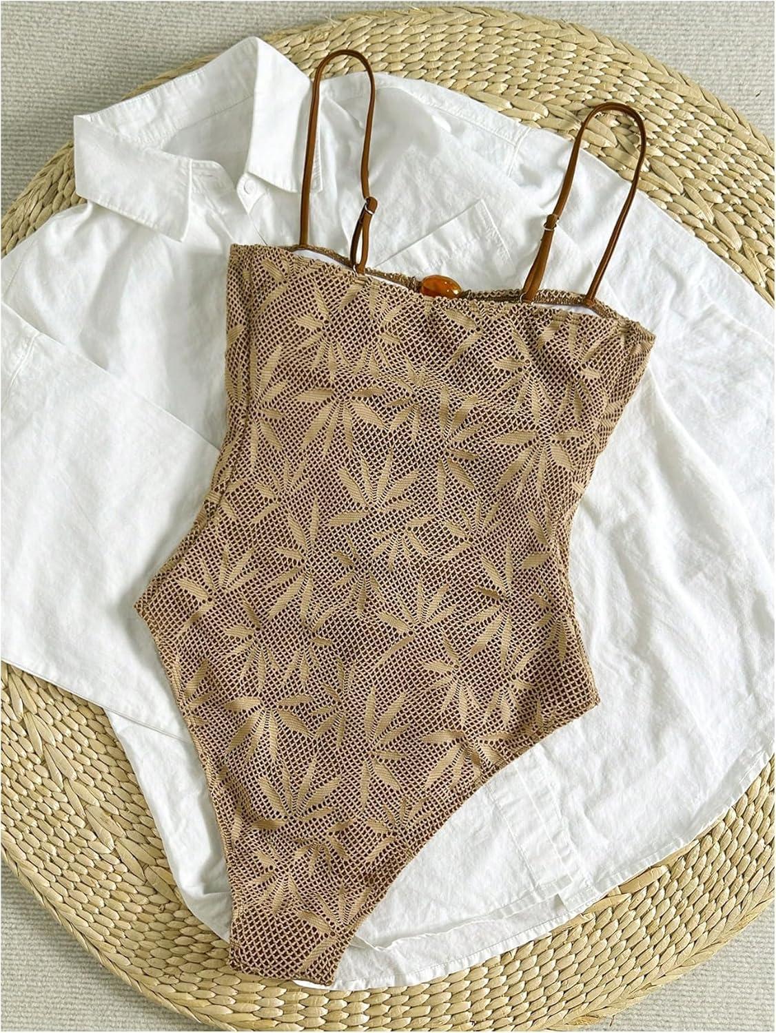 SOLY HUX Women’s One Piece Swimsuit Cutout Bathing Suits High Cut Swimwear Vacation Cruise Wear(Khaki Graphic)