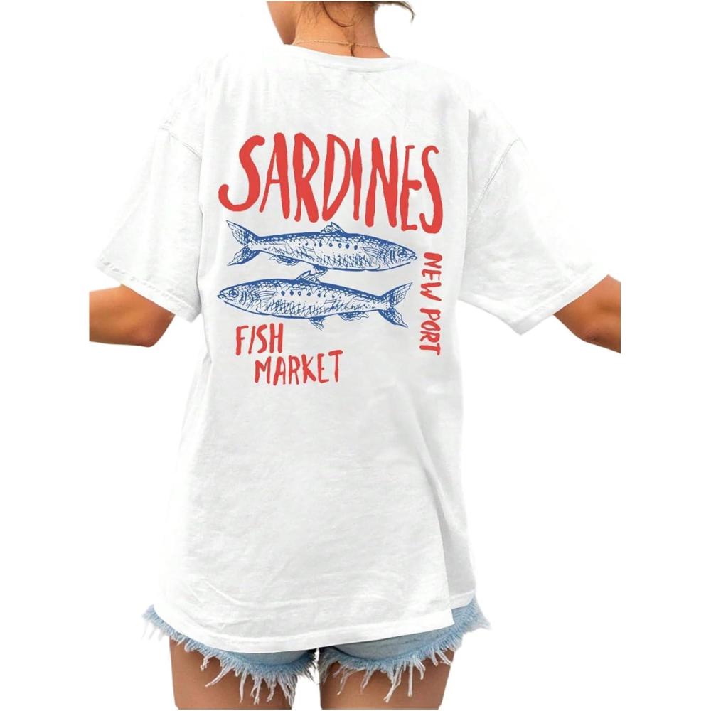 SOLY HUX Women’s Oversized Graphic Tees Drop Shoulder Half Sleeve Loose Casual T Shirt Tops(White Graphic Print)