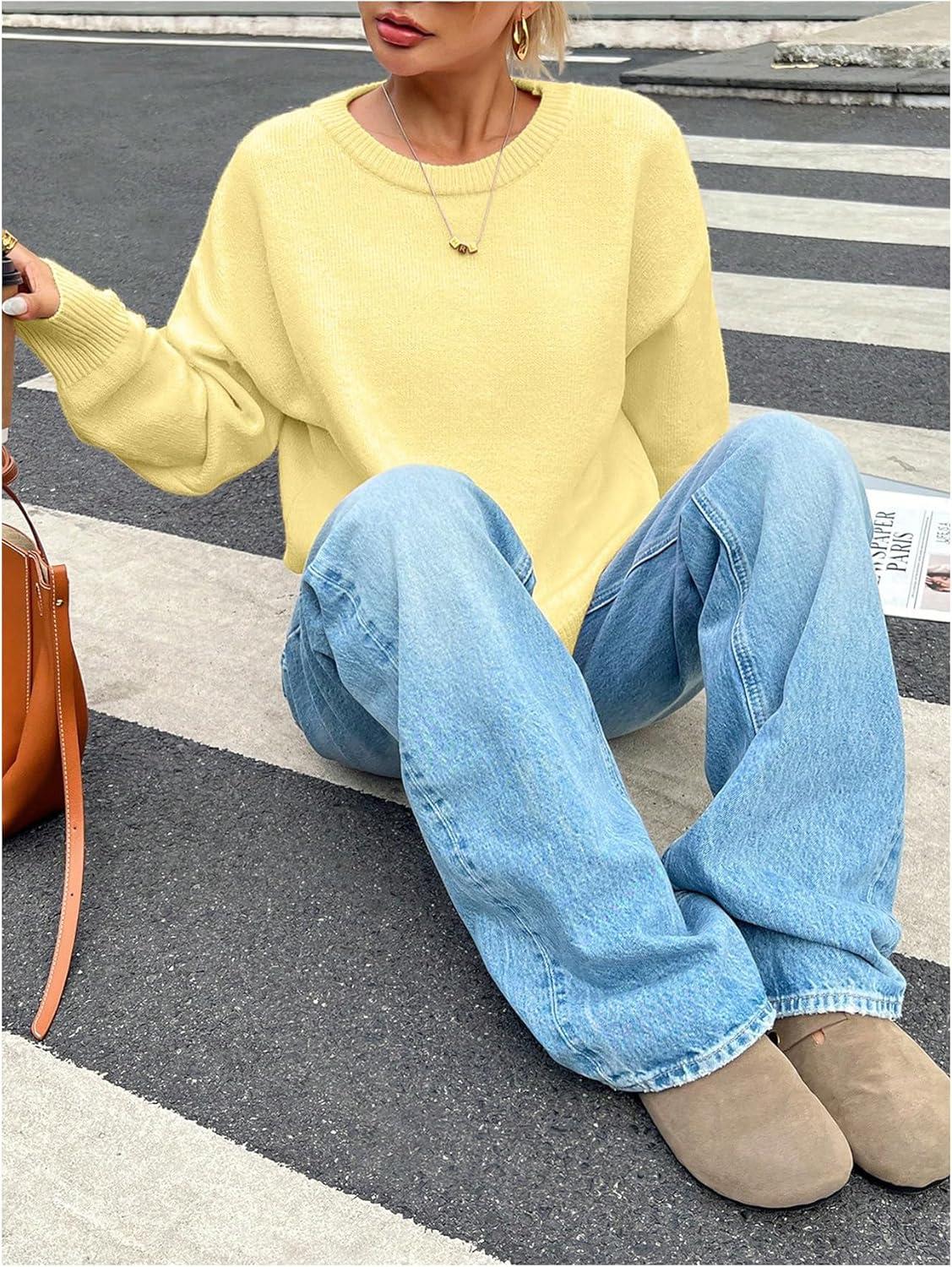 SOLY HUX Women’s Oversized Sweater Long Sleeve Crewneck Cute Pullover Knit Tops Casual Trendy Fall Winter Clothing(Plain Yellow)