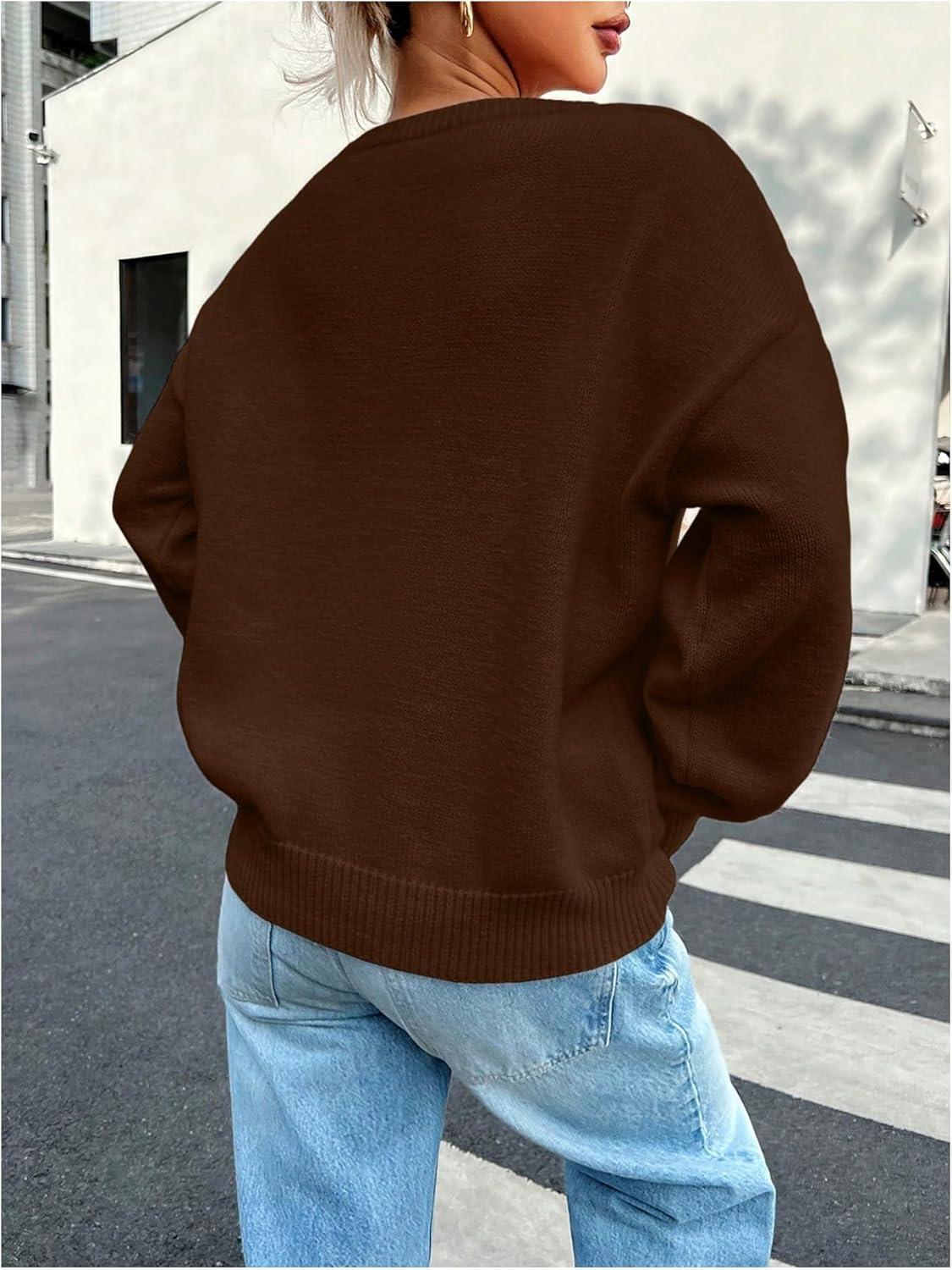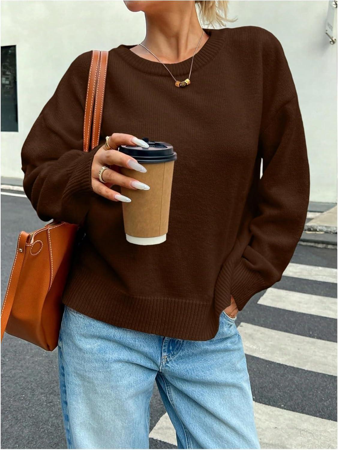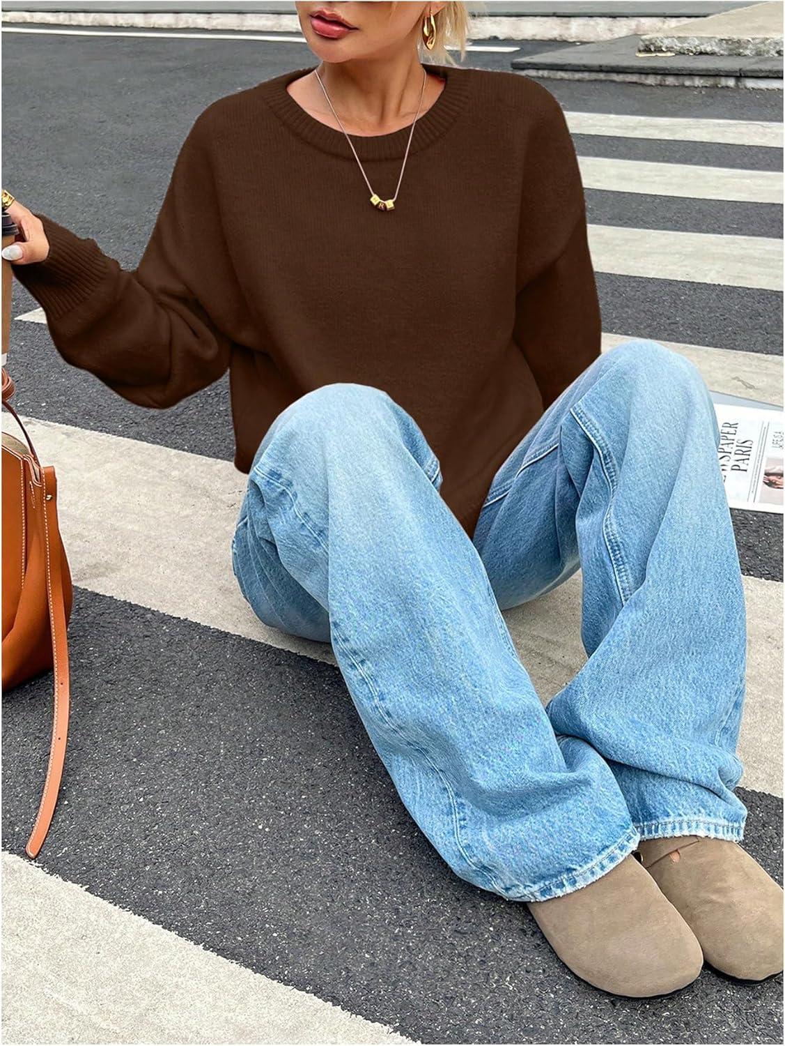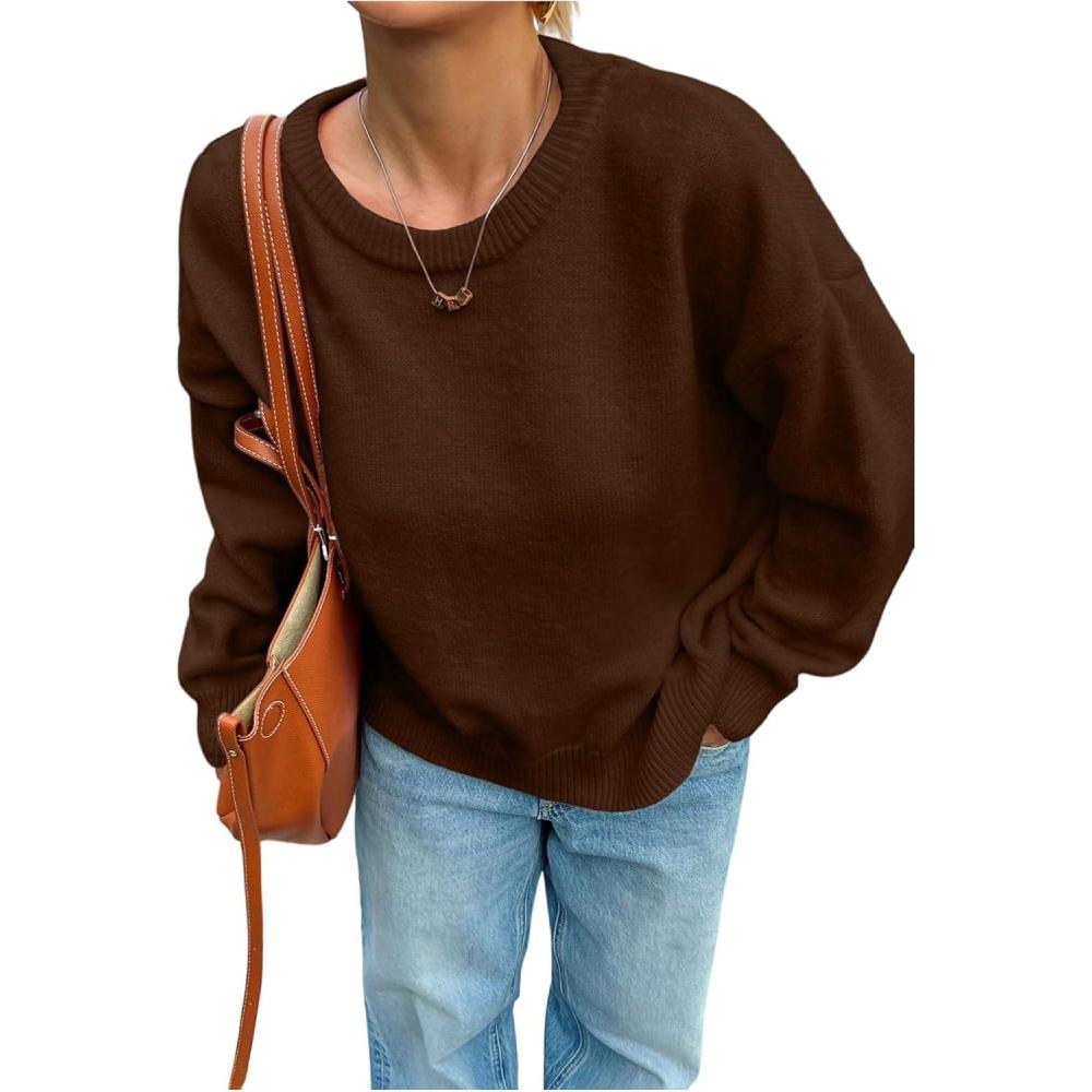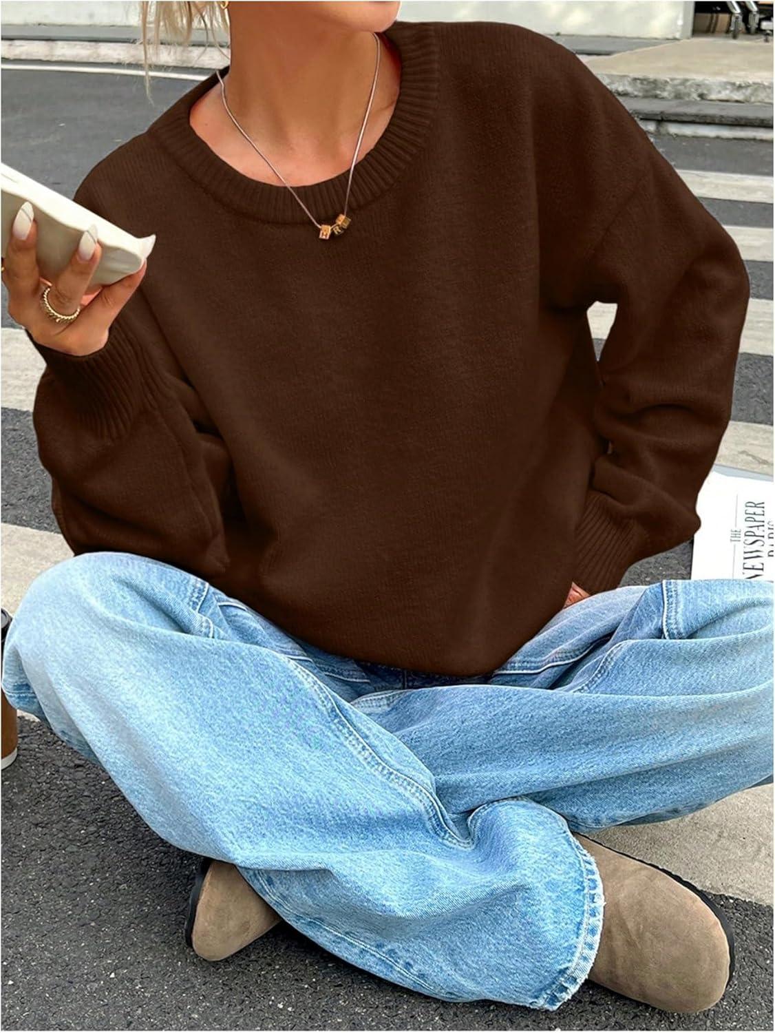 SOLY HUX Women’s Oversized Sweater Long Sleeve Crewneck Cute Pullover Knit Tops Casual Trendy Fall Winter Clothing(Pure Coffee Brown)