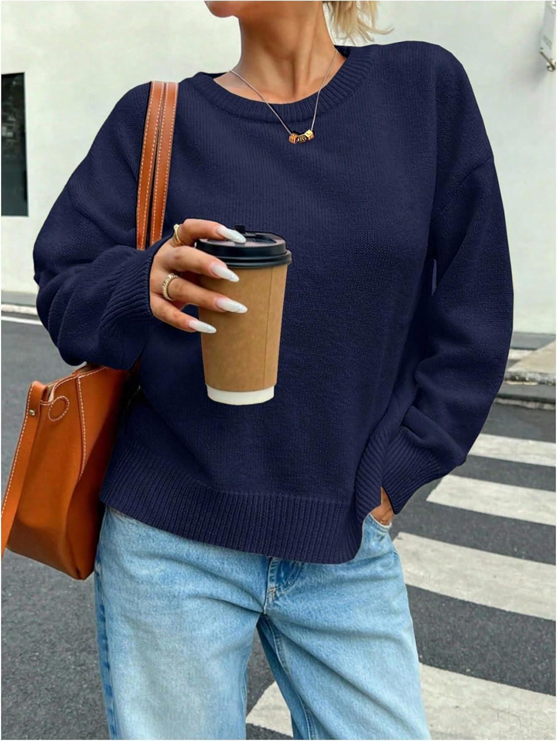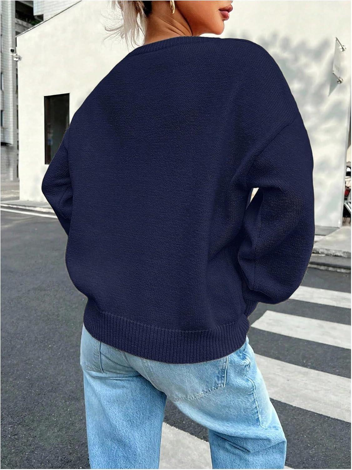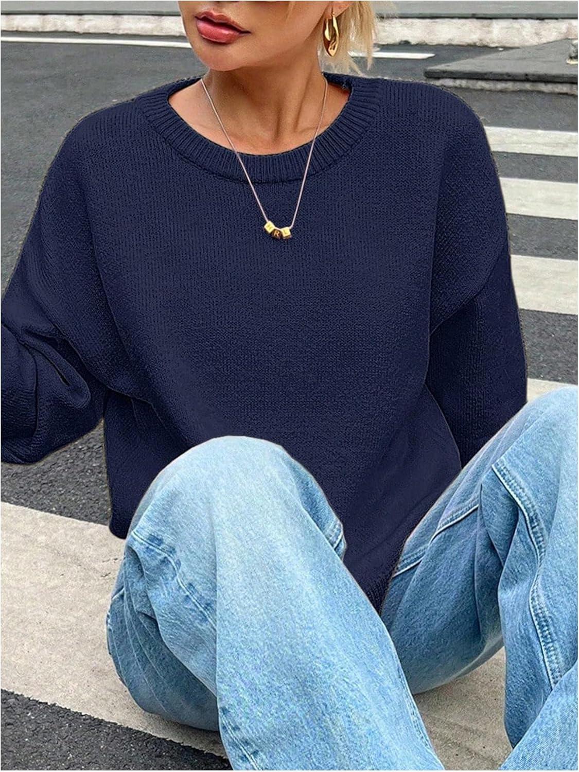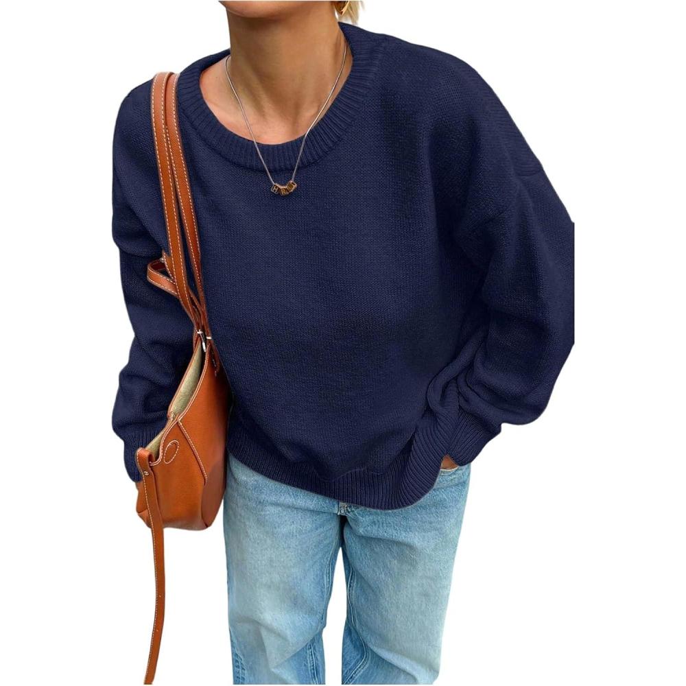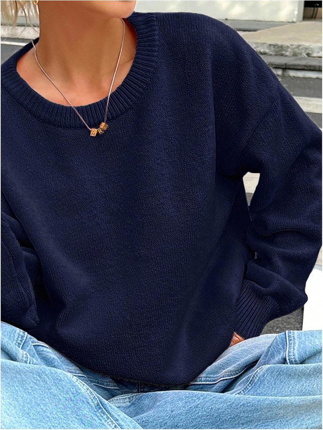 SOLY HUX Women’s Oversized Sweater Long Sleeve Crewneck Cute Pullover Knit Tops Casual Trendy Fall Winter Clothing(Pure Dark Blue)