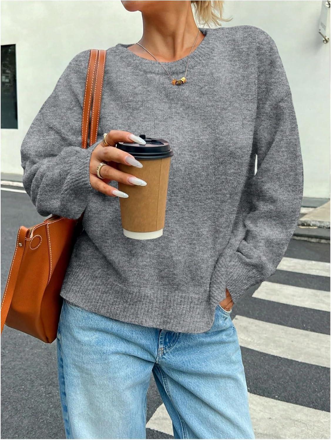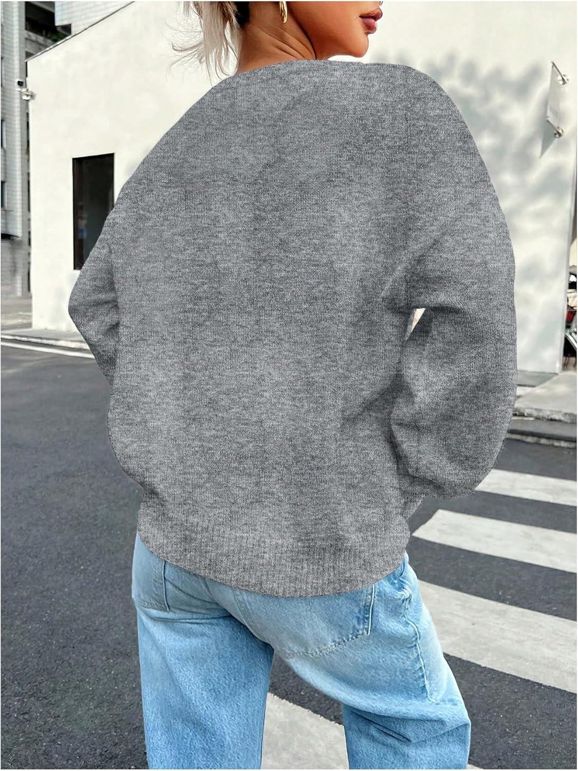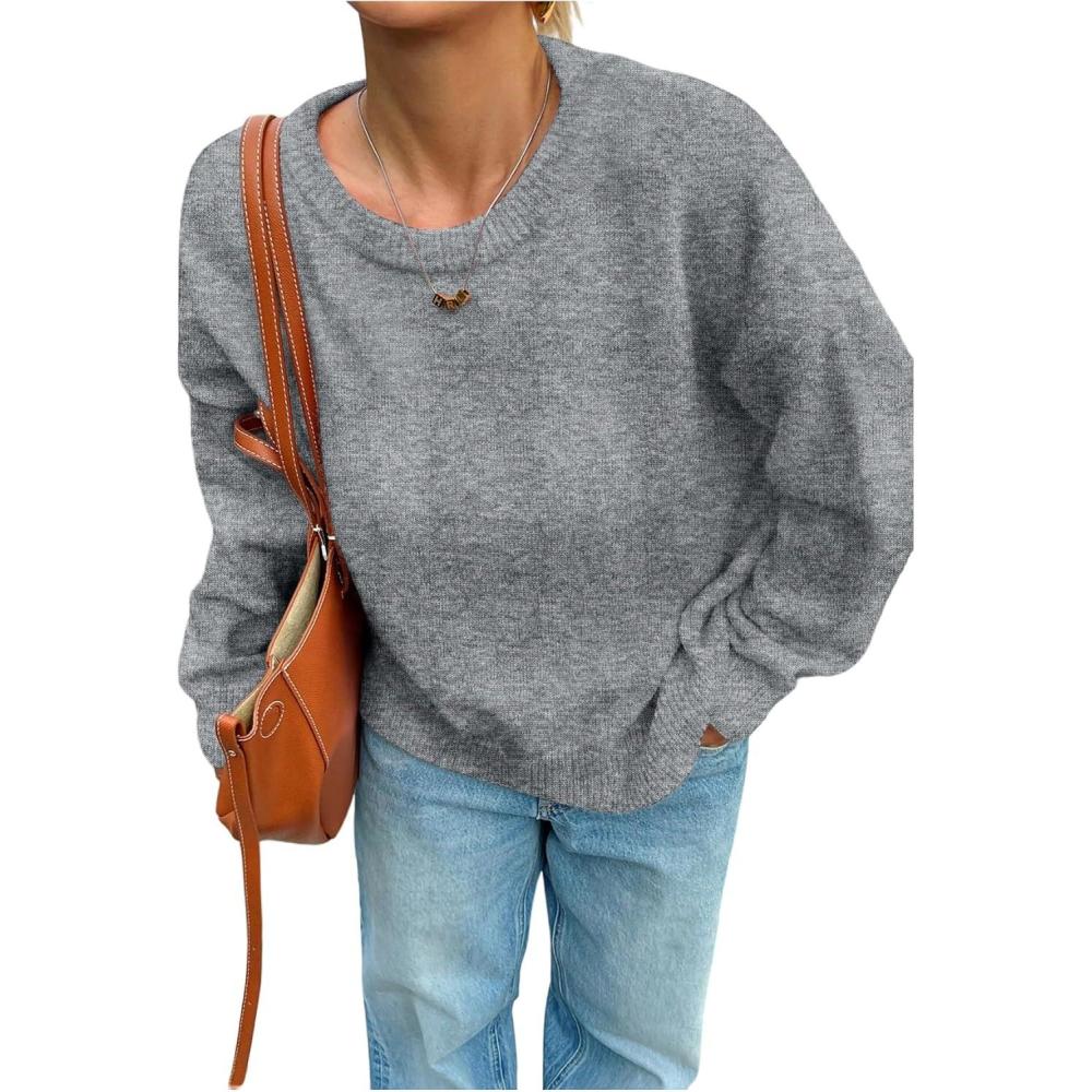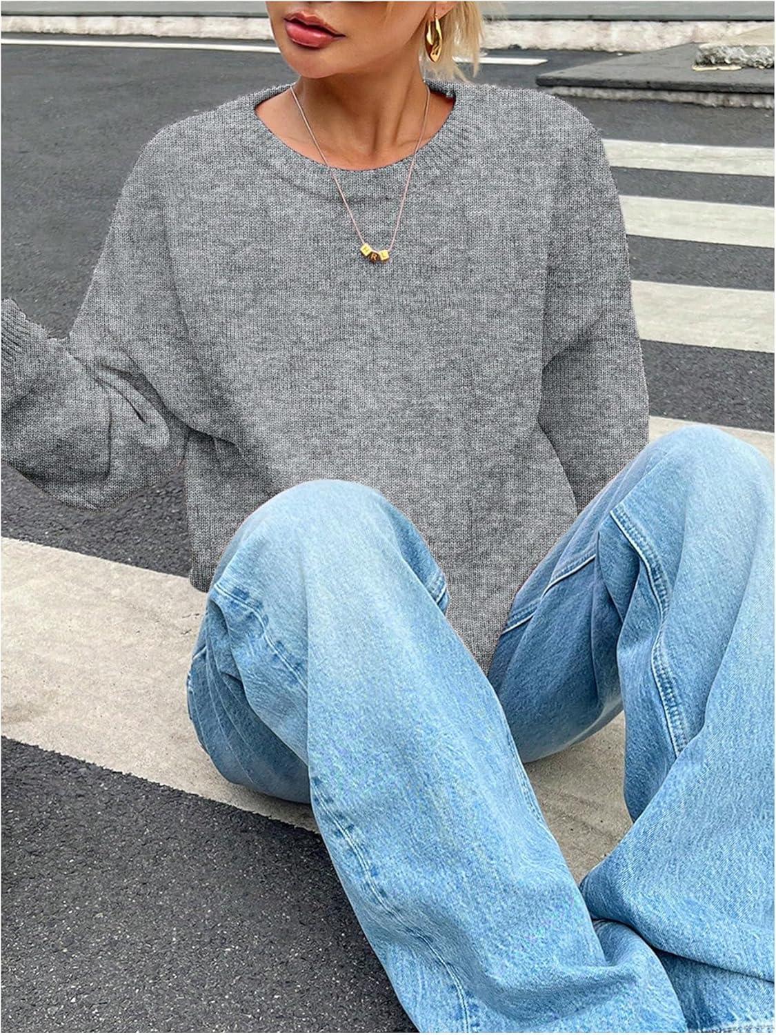 SOLY HUX Women’s Oversized Sweater Long Sleeve Crewneck Cute Pullover Knit Tops Casual Trendy Fall Winter Clothing(Pure Grey)