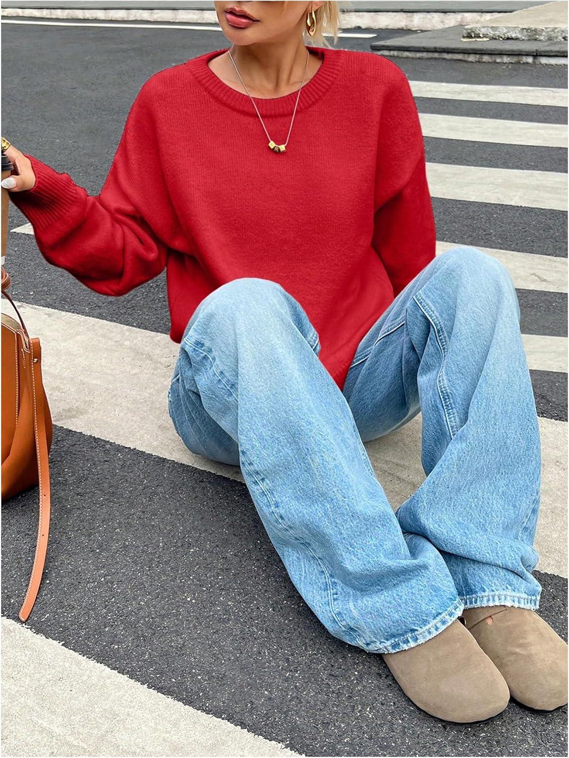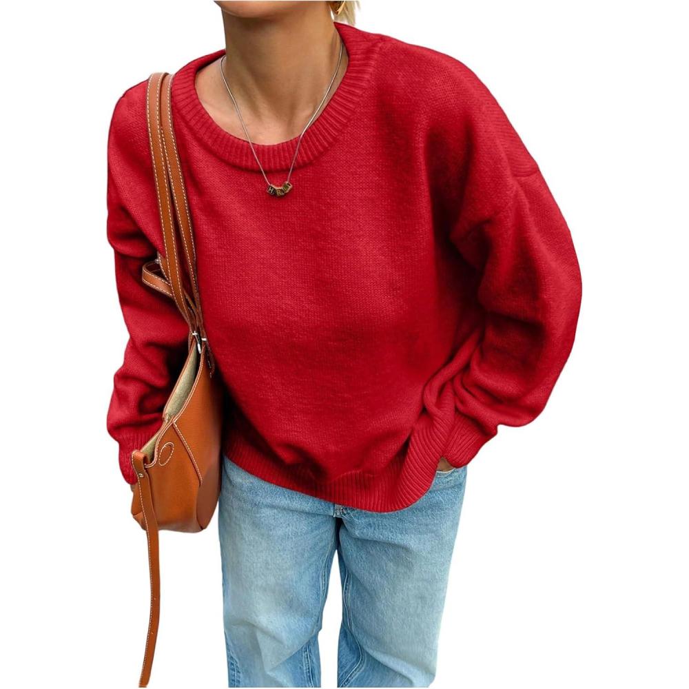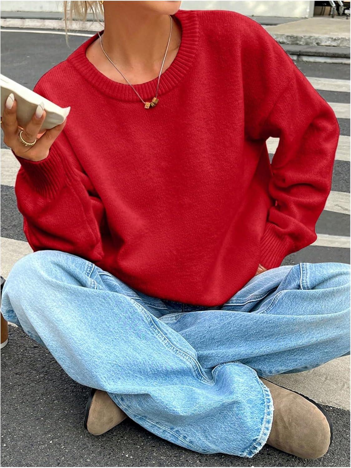 SOLY HUX Women’s Oversized Sweater Long Sleeve Crewneck Cute Pullover Knit Tops Casual Trendy Fall Winter Clothing(Pure Red)
